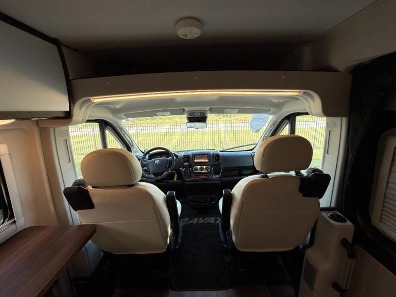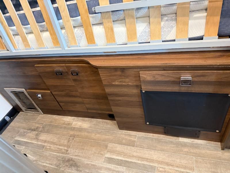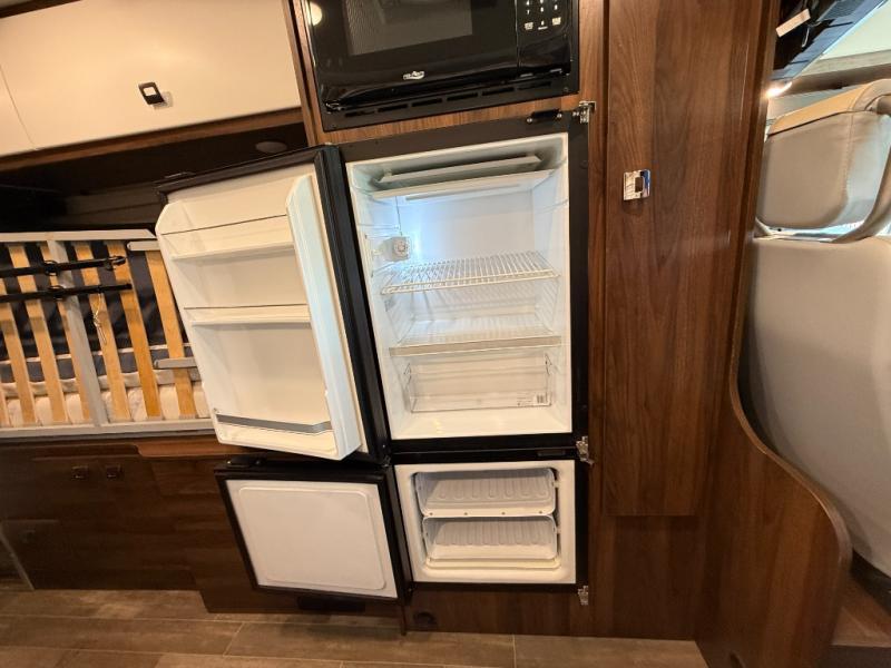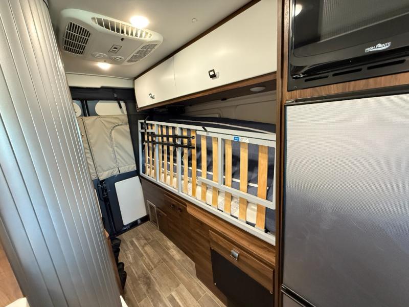 Efficiency meets comfort in the Travato Class B gas motorhome by Winnebago. The 215W solar panels and the energy management system allow you to go off-grid when the adventure calls for it, and the Coleman Mach 10 NDQ A/C will keep you comfortable during the hot summer months. If the weather is nice out, set up the power awning with LED lights or stay inside with the side and rear screen doors closed to keep the bugs out. Each model includes plenty of storage space, including RAM Tough-Track Mounts throughout, Anything Keeper drop-down storage baskets, plus below-floor storage for your outside gear. The Travato also includes a Corian countertop and a spice rack in the galley, a convenient medicine cabinet and mirror in the bath, plus LED ceiling lights throughout to keep everything bright and open! Some of the new additions to the Travato are the Bluetooth sound bar, Honeycomb composite insulated flooring, convenience door strap, and the monitor panels that have been relocated above the sliding door.