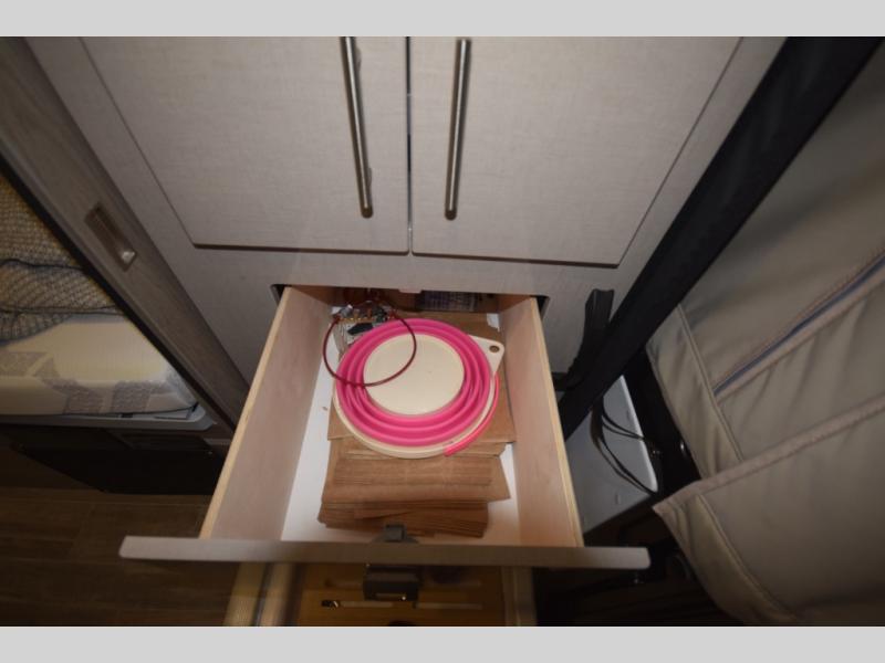 Winnebago’s attention to detail shines through with features like RAM Tough-Track Mounts, Anything Keeper storage baskets, and below-floor gear storage, making organization effortless. Add in the medicine cabinet and mirror in the bath, sleek LED ceiling lighting, and thoughtful touches like a spice rack in the galley, and you’ve got everything you need for life on the road—without compromise.