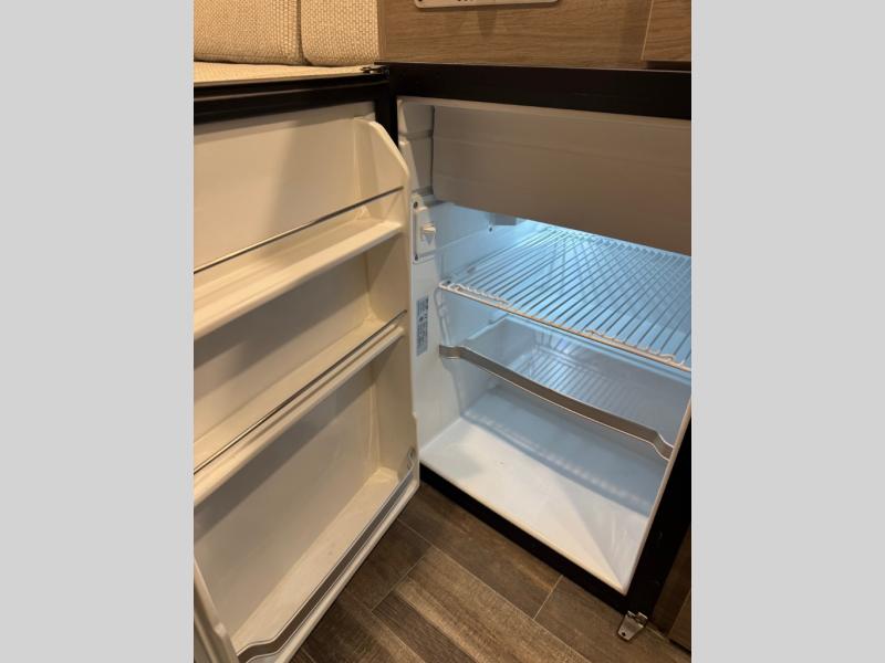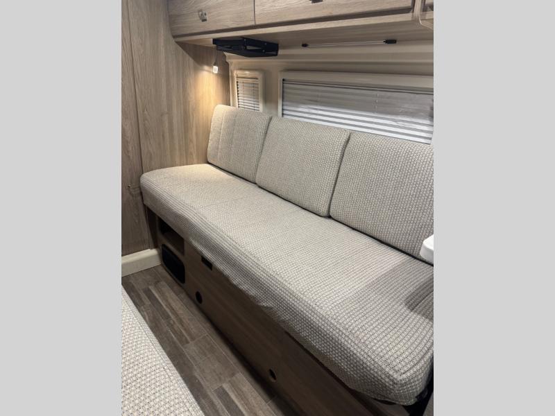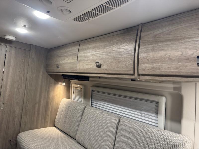 Efficiency meets comfort in the Travato Class B gas motorhome by Winnebago. The 215W solar panels and the energy management system allow you to go off-grid when the adventure calls for it, and the Coleman Mach 10 NDQ A/C will keep you comfortable during the hot summer months. If the weather is nice out, set up the power awning with LED lights or stay inside with the side and rear screen doors closed to keep the bugs out. Each model includes plenty of storage space, including RAM Tough-Track Mounts throughout, Anything Keeper drop-down storage baskets, plus below-floor storage for your outside gear. The Travato also includes a Corian countertop and a spice rack in the galley, a convenient medicine cabinet and mirror in the bath, plus LED ceiling lights throughout to keep everything bright and open! Some of the new additions to the Travato are the Bluetooth sound bar, Honeycomb composite insulated flooring, convenience door strap, and the monitor panels that have been relocated above the sliding door.