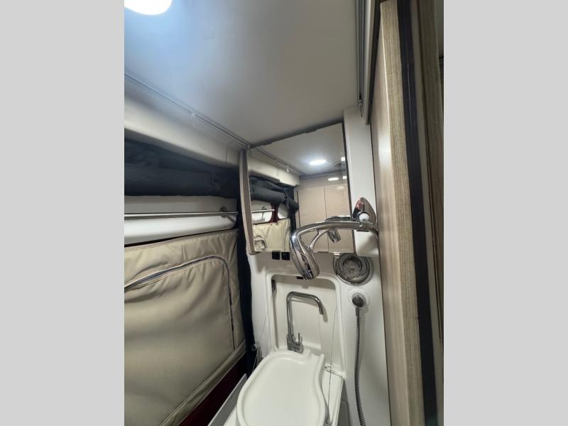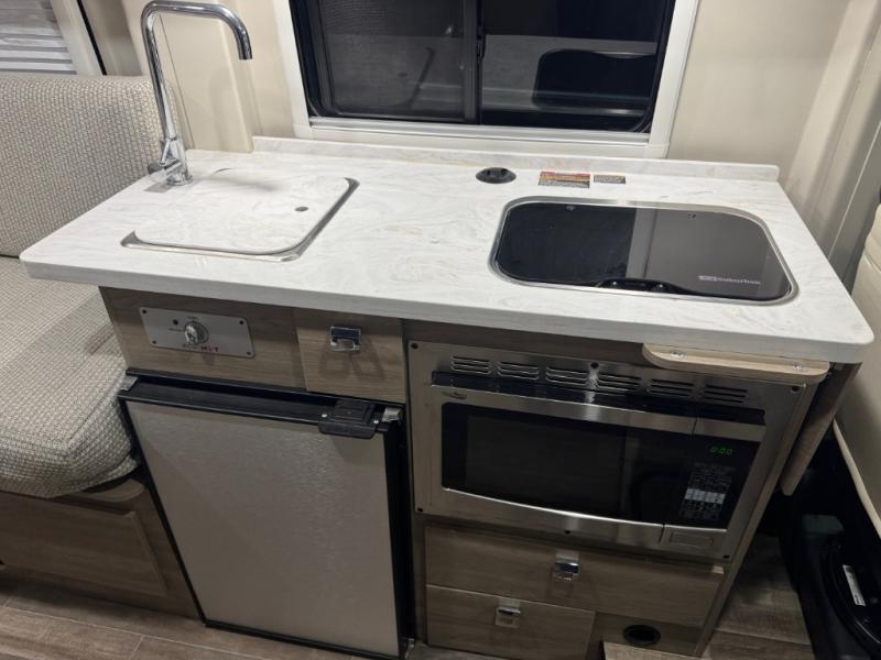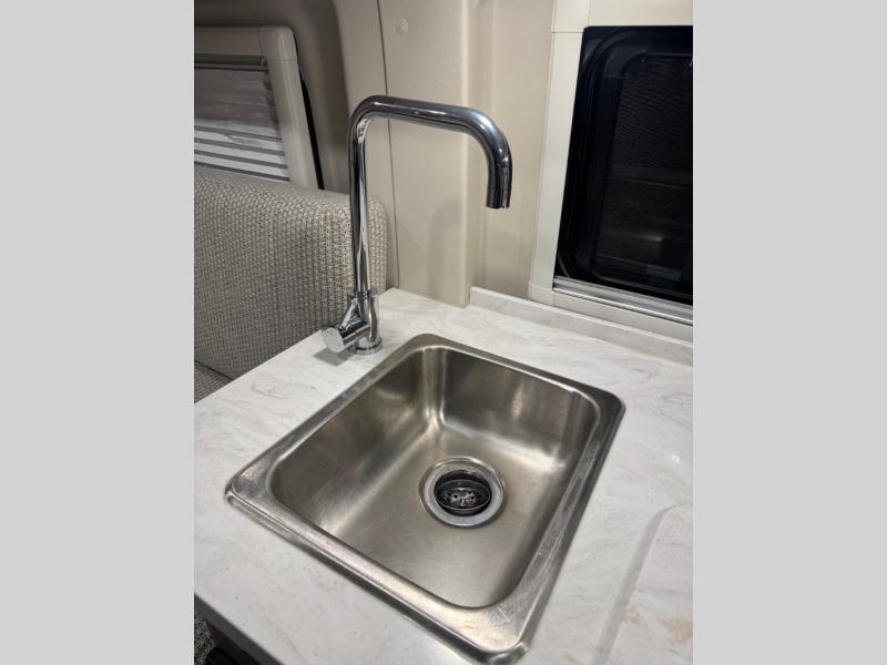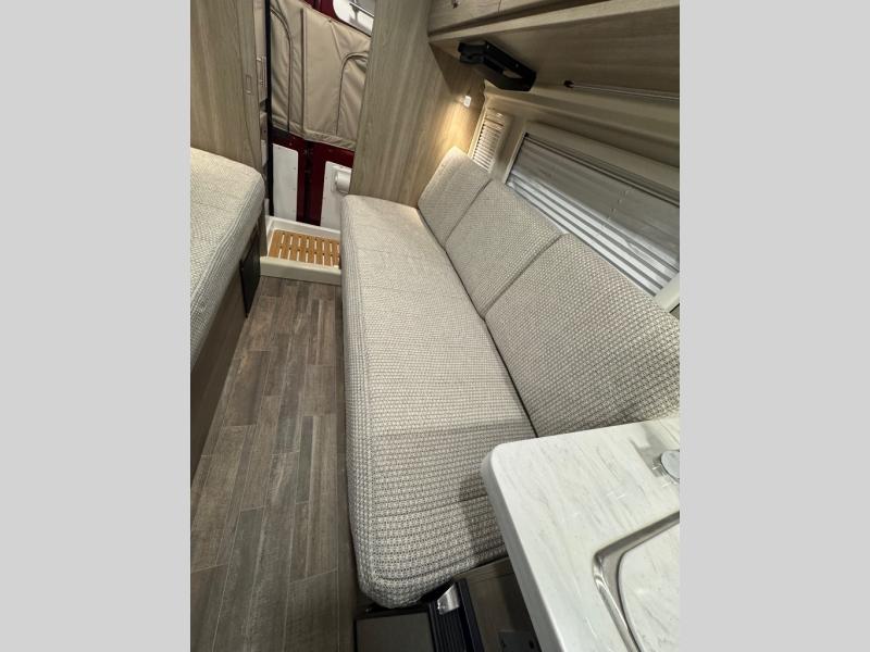 Pack your bags and head out across the country in this Travato Class B gas motorhome! The two twin beds can convert into a king-size bed if you're traveling with your friend or spouse, and there is a convenient rear wet bath to freshen up every day. Prepare breakfast on the two-burner cooktop or in the convection microwave, and the pull-out countertop extension will give the chef more space to prep. The driver's seat can swivel to use this countertop as a table, and the swivel passenger's seat can use the additional adjustable/removable table for coffee. Spend your evening watching a movie on the 24" HDTV, or head outside to sit under the 13' power awning with LED lights and Bluetooth control!