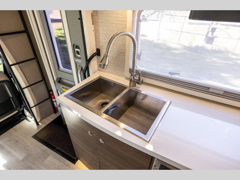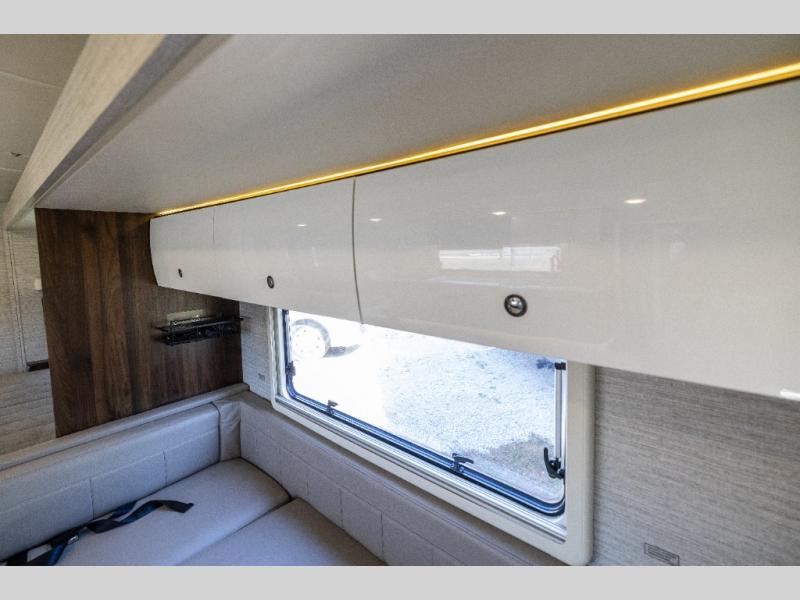 With each View Class C diesel motorhome by Winnebago, you can extend your trips off grid with the industry-leading holding tanks, the two 100W solar panels, the two deep-cycle Group 31 RV batteries, the 2,000W inverter, plus the 3,600W Cummins Onan MicroQuiet LP generator. The insulated sleeper deck is built with premium thermal and acoustic insulation allowing the SuperShell sleeper deck to be more comfortable and relaxing during any season. The View is built on a Mercedes-Benz Sprinter chassis with advanced safety features giving you peace of mind, and the MBUX touchscreen infotainment system has intelligent voice control, navigation, a Wi-Fi hotspot, and more! The interior offers luxury space and simple solutions for storage, plus it also has vinyl flooring and laminate countertops for easy clean-up.
