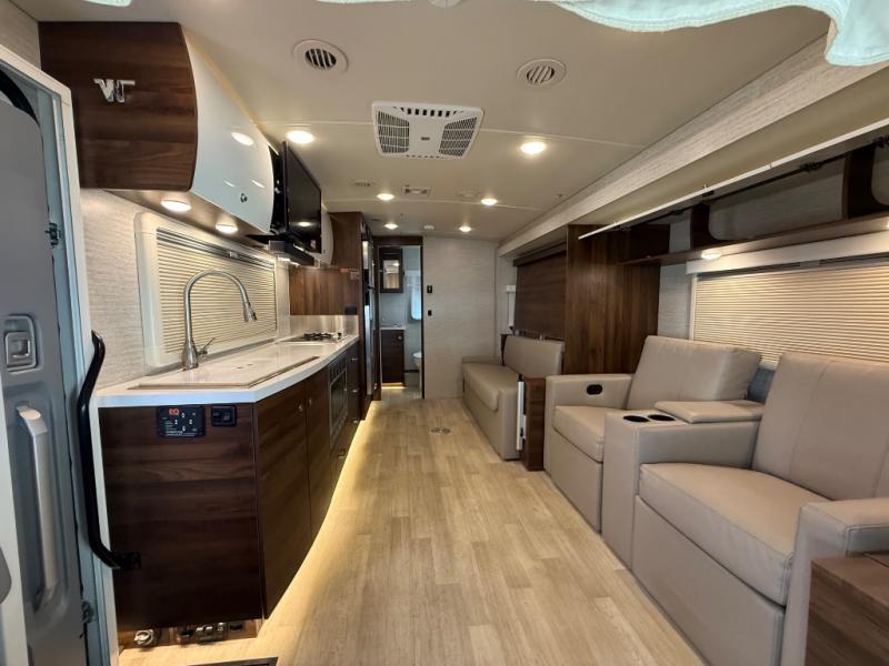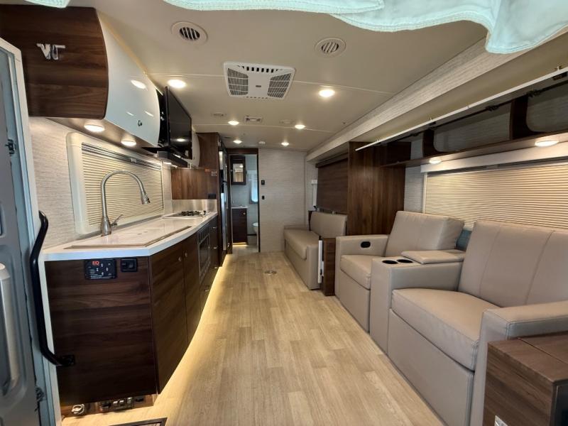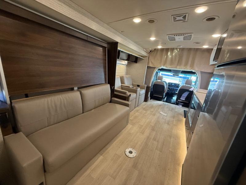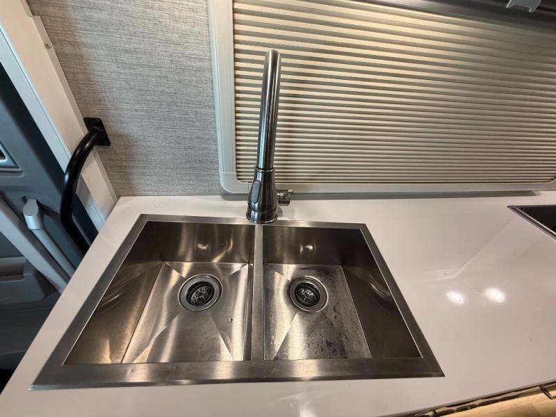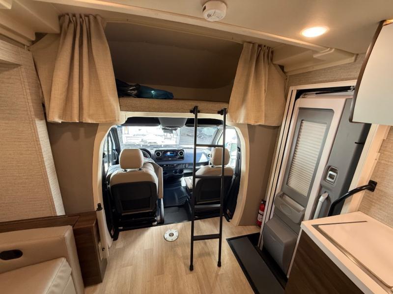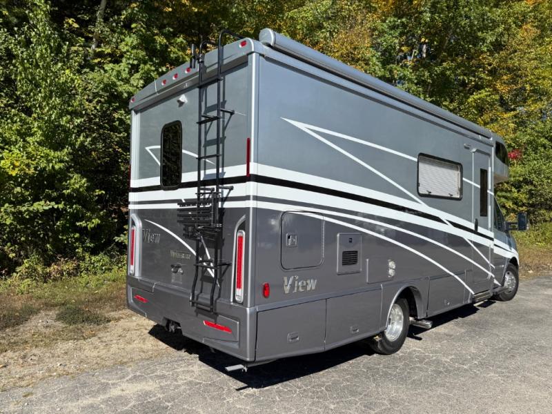 With each View Class C diesel motorhome by Winnebago, you can extend your trips off grid with the industry-leading holding tanks, the two 100W solar panels, the two deep-cycle Group 31 RV batteries, the 2,000W inverter, plus the 3,600W Cummins Onan MicroQuiet LP generator. The insulated sleeper deck is built with premium thermal and acoustic insulation allowing the SuperShell sleeper deck to be more comfortable and relaxing during any season. The View is built on a Mercedes-Benz Sprinter chassis with advanced safety features giving you peace of mind, and the MBUX touchscreen infotainment system has intelligent voice control, navigation, a Wi-Fi hotspot, and more! The interior offers luxury space and simple solutions for storage, plus it also has vinyl flooring and laminate countertops for easy clean-up.