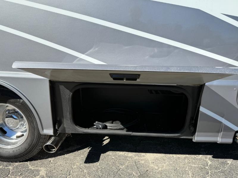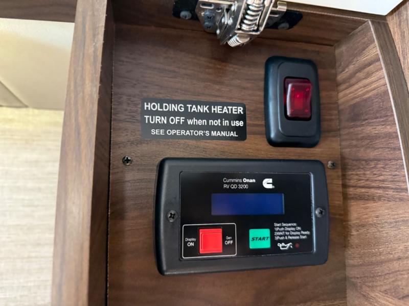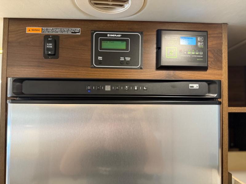 Systems include dual LP tanks, power stabilizers, a power tongue jack, and a 50-amp electrical service. It’s also equipped with standard features like a solar charging setup, prewire for backup camera, and efficient slide mechanisms.