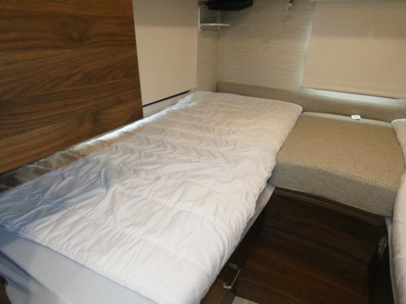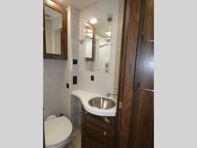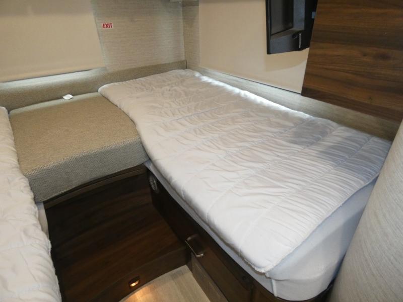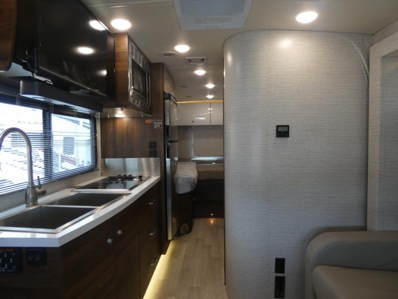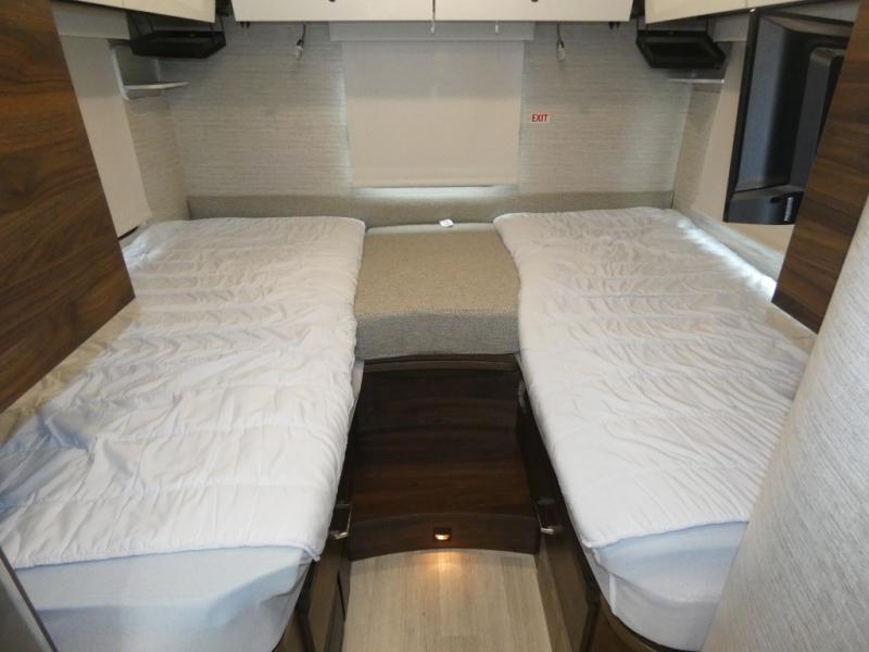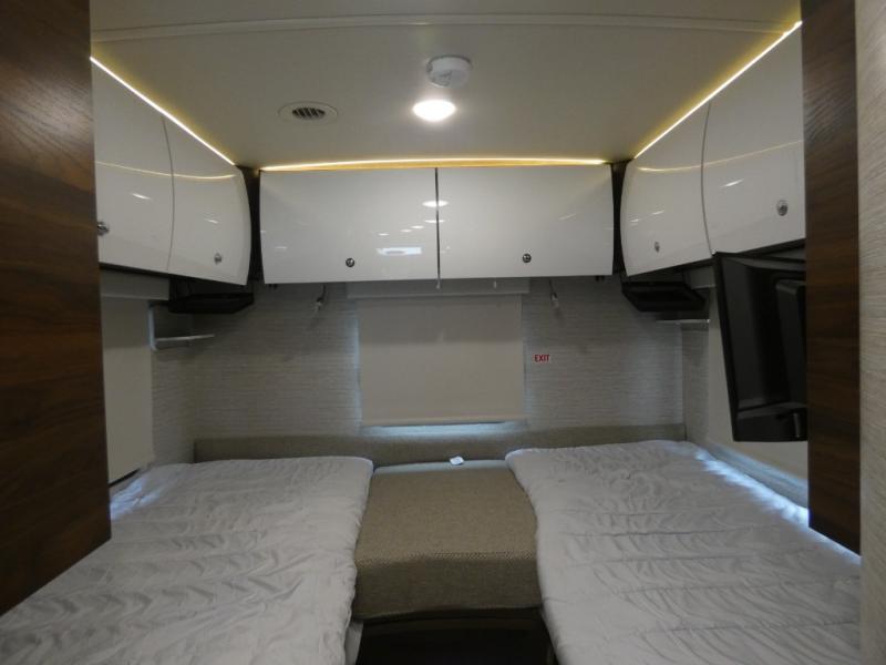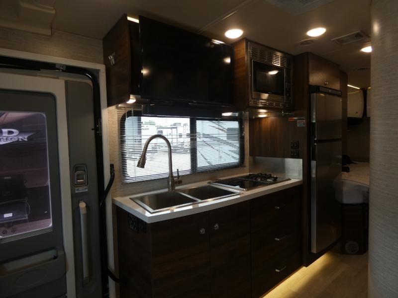 This versatile View Class C diesel motorhome gives you the ability to sleep in twin beds each with a wardrobe at the foot of the bed, or you might like to use the Flex Bed system to convert them into one 74" x 87" king bed. Other sleeping spaces include the bunk above the cab that the kids will love, and the TrueComfort+ sofa slide out which includes a table for dining, playing games, or maybe getting a little work done. The cook will have all the necessary appliances to make warm meals including a convection microwave oven and an LP/induction cooktop, and the curved cabinets and lighted soft-close galley drawers create an upscale cooking experience.