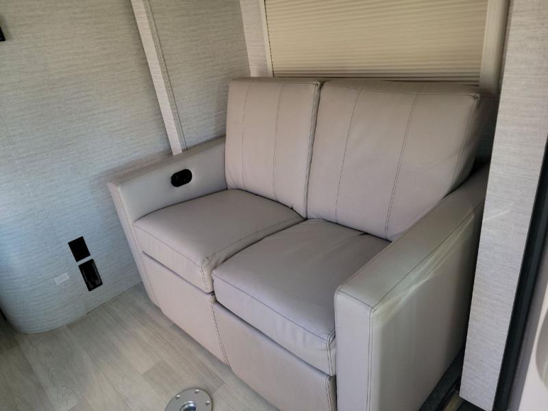 This versatile View Class C diesel motorhome gives you the ability to sleep in twin beds each with a wardrobe at the foot of the bed, or you might like to use the Flex Bed system to convert them into one 74" x 87" king bed. Other sleeping spaces include the bunk above the cab that the kids will love, and the TrueComfort+ sofa slide out which includes a table for dining, playing games, or maybe getting a little work done. You might even decide to add the optional seating with table instead if you don't think you will need the extra sleeping space. The cook will have all the necessary appliances to make warm meals including a convection microwave oven and an LP/induction cooktop, and the curved cabinets and lighted soft-close galley drawers create an upscale cooking experience.