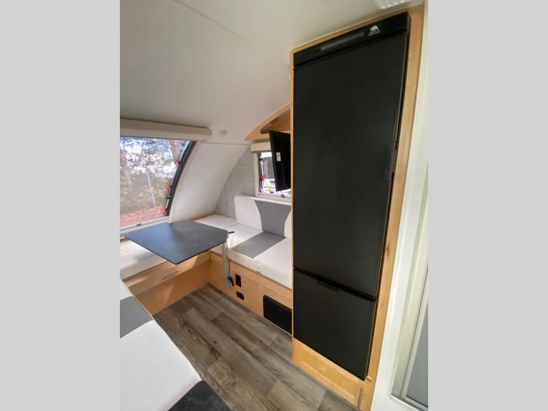 This Little Guy teardrop trailer is designed to deliver the maximum amount of fun in a compact package! This trailer can easily be towed by a small SUV or well-equipped crossover, and it is a tough trailer that offers 15" premium tires, Azdel composite sidewalls, insulated dual-pane windows, an exterior entertainment center, and a friction-hinge entry door. Despite its compact size, this trailer still offers you a spacious interior living space with its 6' interior height. The refrigerator is astonishingly large at 5 cubic feet, so you can store a week's worth of groceries without breaking a sweat. You can even tack on an optional rear vertical stargazer window which allows you to bring more of the outdoors inside.