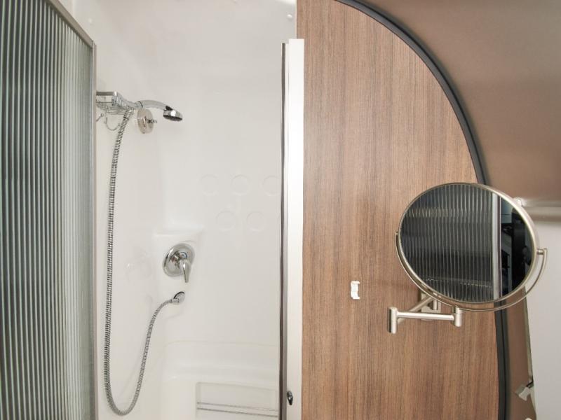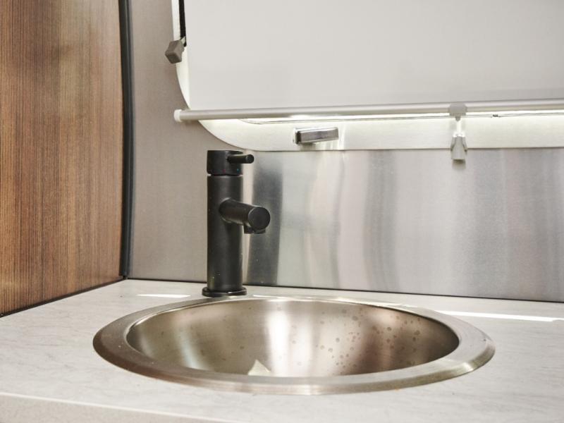 Relax in the full-size pillowtop memory foam mattress, perfectly contoured to fit the sleek curves of the Caravel. Surrounded by panoramic windows with blackout curtains, this sleeping area offers both stunning views and complete privacy. Enjoy ambient lighting with built-in LED reading lights, and take advantage of the under-bed storage for added convenience.