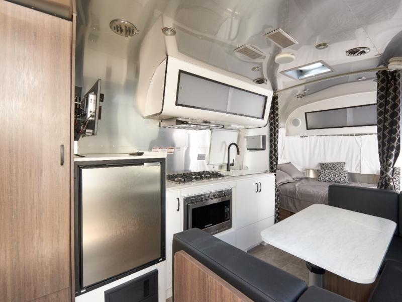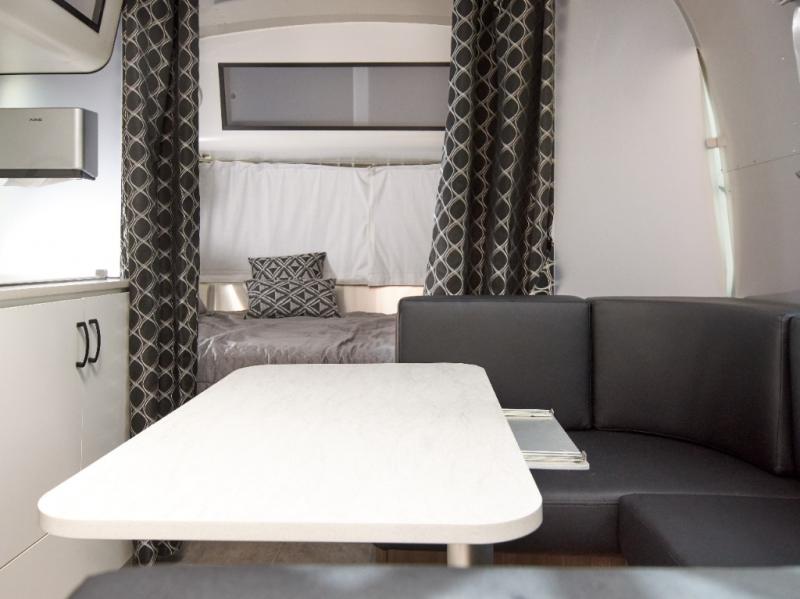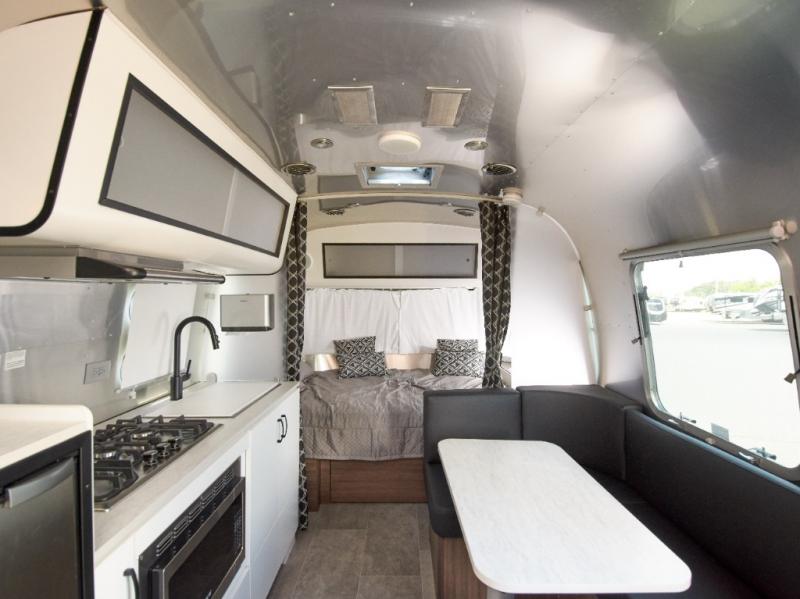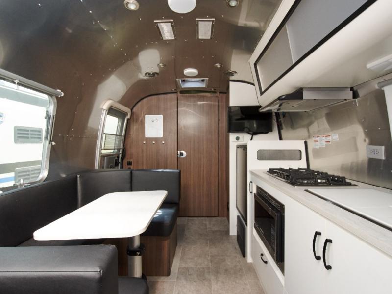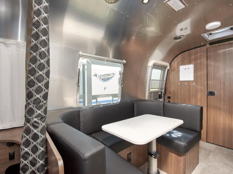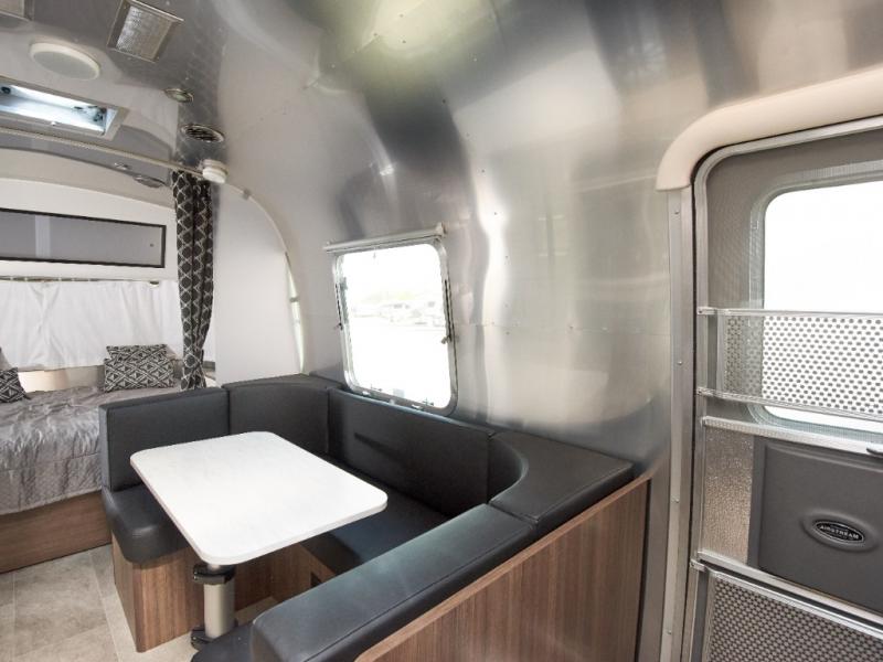 Experience the Airstream Caravel 22FB—where panoramic windows flood the interior with natural light and a versatile U-shaped dinette transforms from dining space to extra sleeping room in seconds.