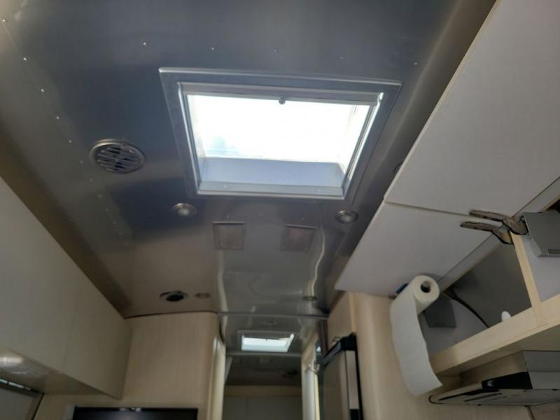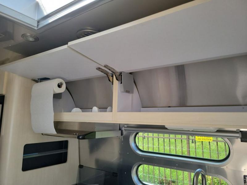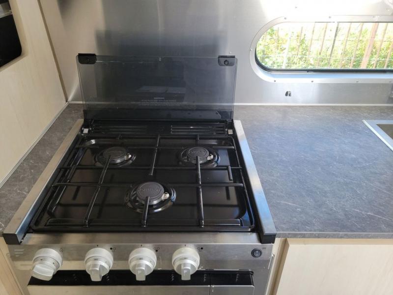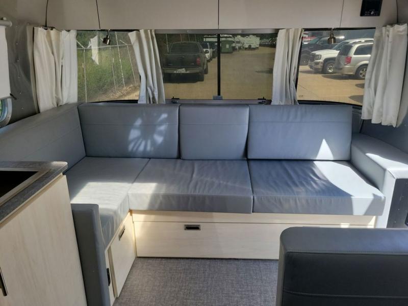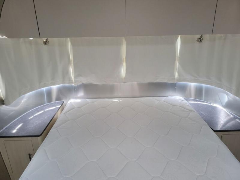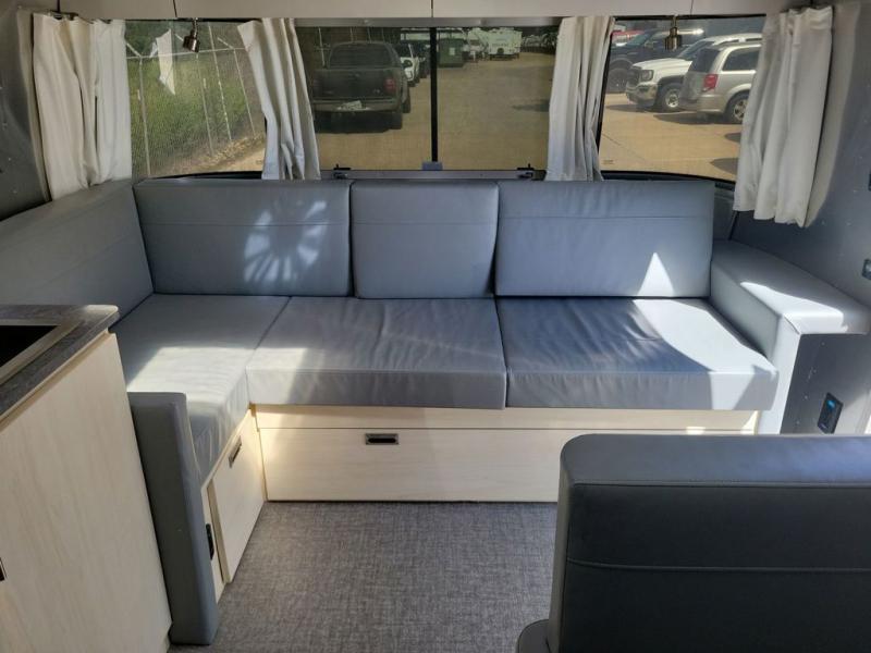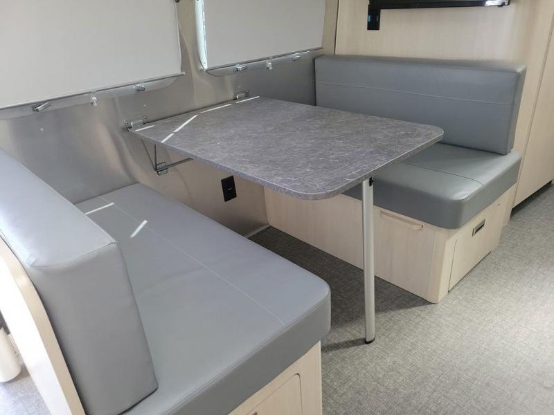 With each Flying Cloud travel trailer by Airstream, there are two axles, and each is built for ease of towing, plus there is a rear-view camera to make reversing and parking easier, and stainless steel front stone guards to protect the lower segments from road debris. The iconic Airstream design is created outside and inside by the semi-monocoque aluminum superstructure, the temperature reducing one-piece white aluminum roof, the panoramic front windows, and the stylish aluminum wheels. The interior will have you feeling right at home with handcrafted cabinetry, plenty of storage and counter space, sleek roller blinds and blackout curtains, plus residential style faucets!