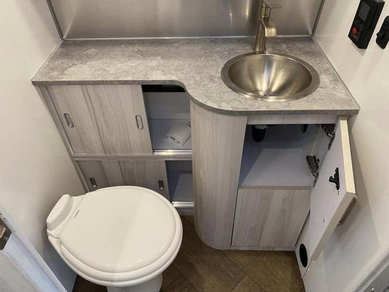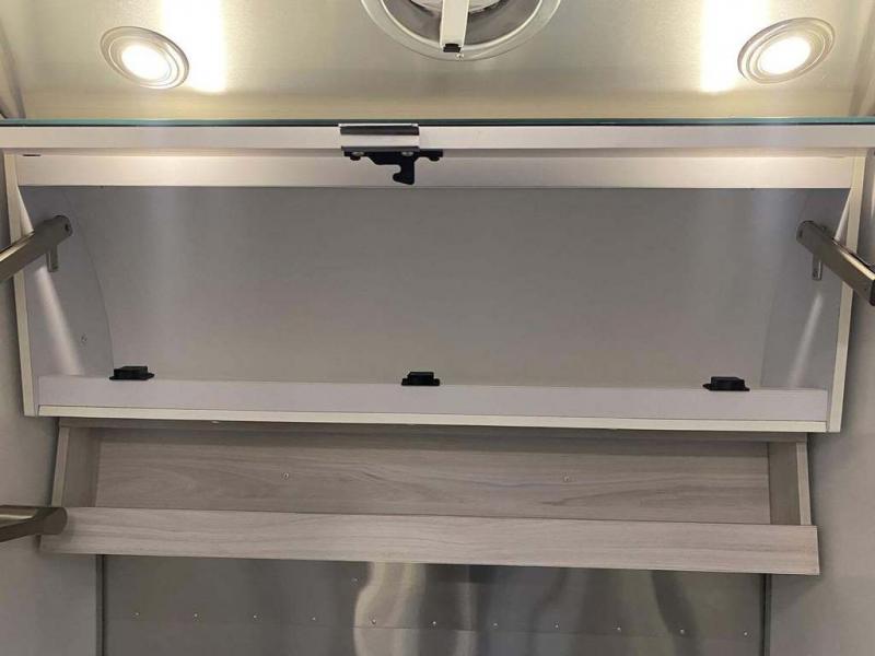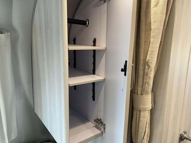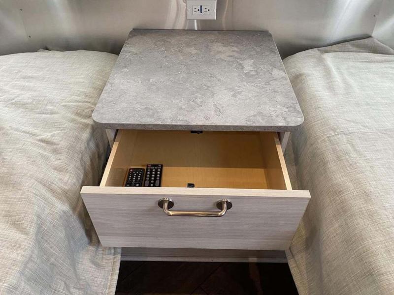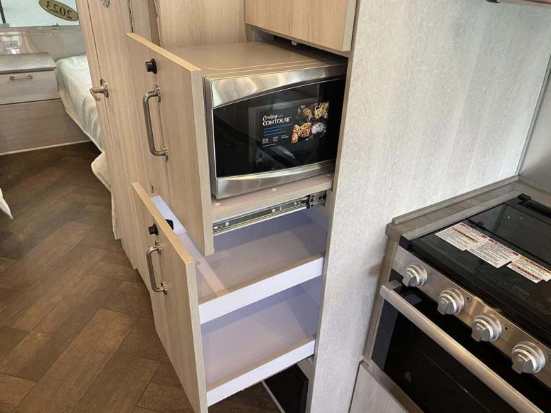 Every time you step foot into the Airstream International travel trailer, you will feel as if you are breathing in a breath of fresh air! The fresh coastal décor was inspired by the waterfront, and the stylish interior delivers a relaxing environment and comfortable luxury. The panoramic windows increase the amount of natural sunlight that streams through to the interior, but they also have blackout shades that you can close whenever you need a darkened room. The beautiful handcrafted Italian Lite-Ply laminated cabinetry is an attractive base for the overhead storage lockers that have sliding doors and LED lighting. The dimmable interior LED lighting will create the perfect amount of illumination for you as you spend time indoors. The exterior has excellent features as well with its enclosed aluminum insulated heated underbelly, unique front door key with heavy-duty deadbolt, optional solar package, solar front window protection, and exterior shower with hot and cold water.