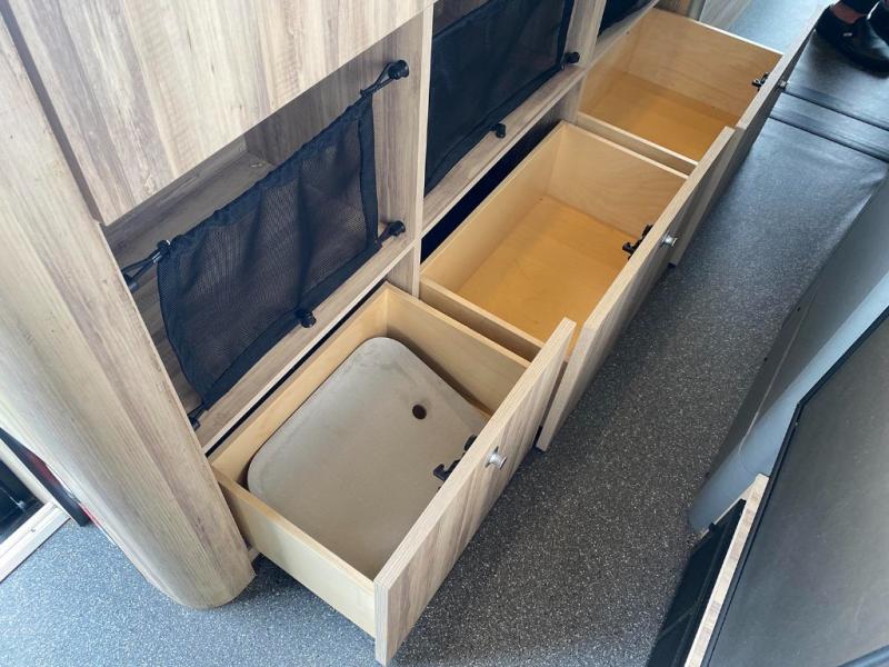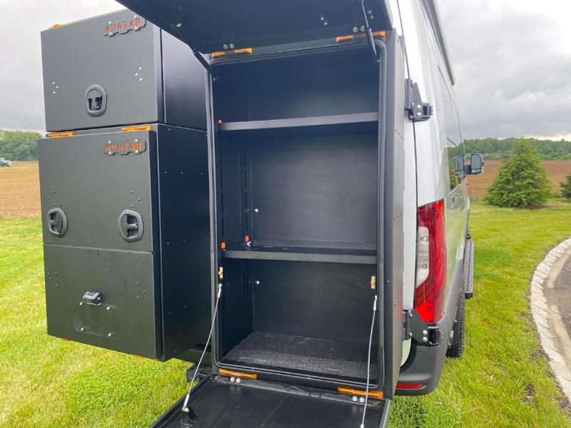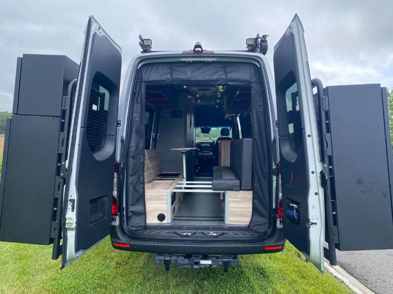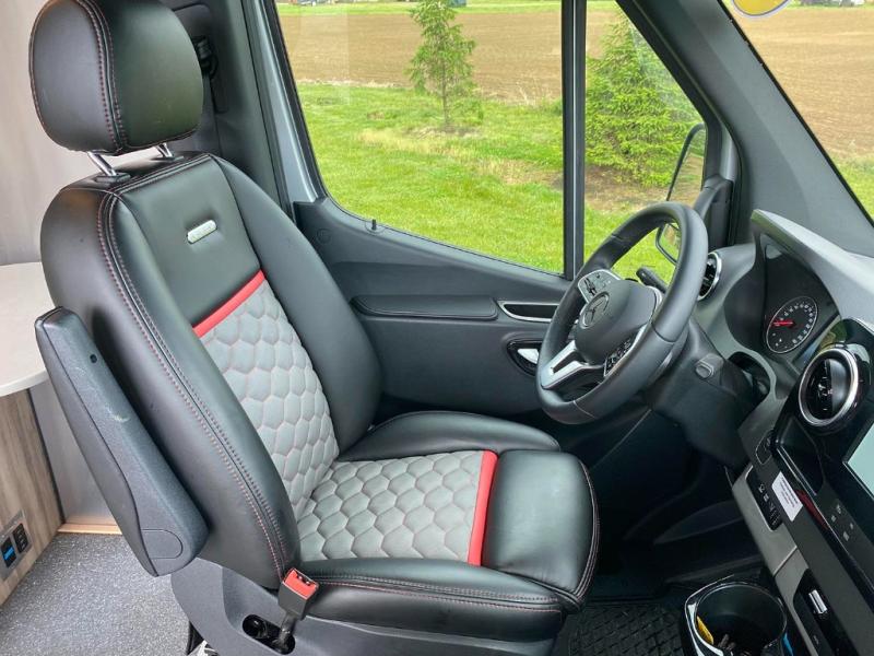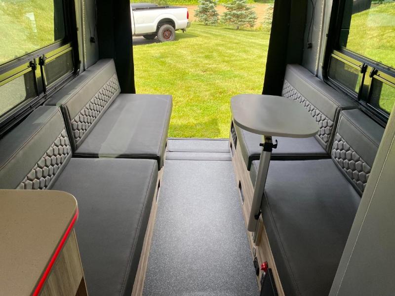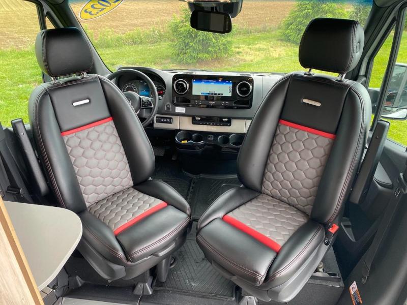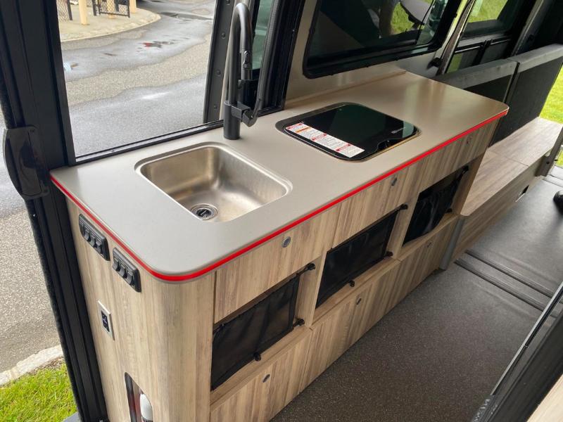 For the true adventurer, there isn't much that quite compares to the Airstream Interstate 24X Class B diesel motorhome! This brand is exceptional for off-grid tours because of its four-wheel drive, air ride suspension, and all-season all-terrain rugged tires. There is also a black roof rack, exterior gear wash station, and an off-road front HD LED light bar. The cockpit has an MBUX infotainment system and premium digital media receiver with Bluetooth connectivity for the tech enthusiast, and you can also add an optional front bed system to the cockpit if you need another sleeping space. You'll also love the adjustable LED lighting, Ultraleather seating, solid surface galley countertop with edge band lighting, and many more interior comforts!