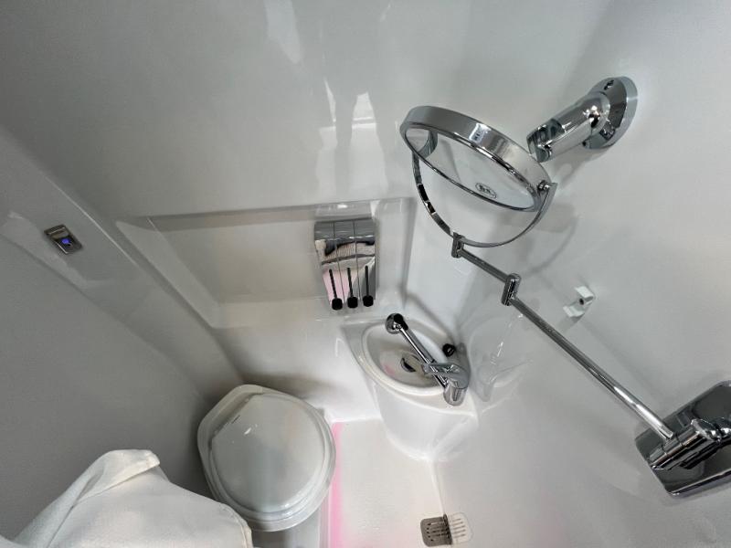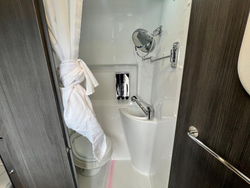 Your adventures are made complete in this nineteen foot coach that can sleep two comfortably. When you arrive at the campground, you can prepare lunch on the two burner gas cooktop, or use the convection microwave. There is also a slide out pantry and a 3.2 cu. ft. 12V refrigerator and freezer for your food storage. The rear sofa/bed and side seats convert to a lay-flat bed, giving you the largest best in its class, plus there is a convenient wet bath on board to stay clean throughout your trip.