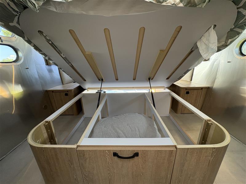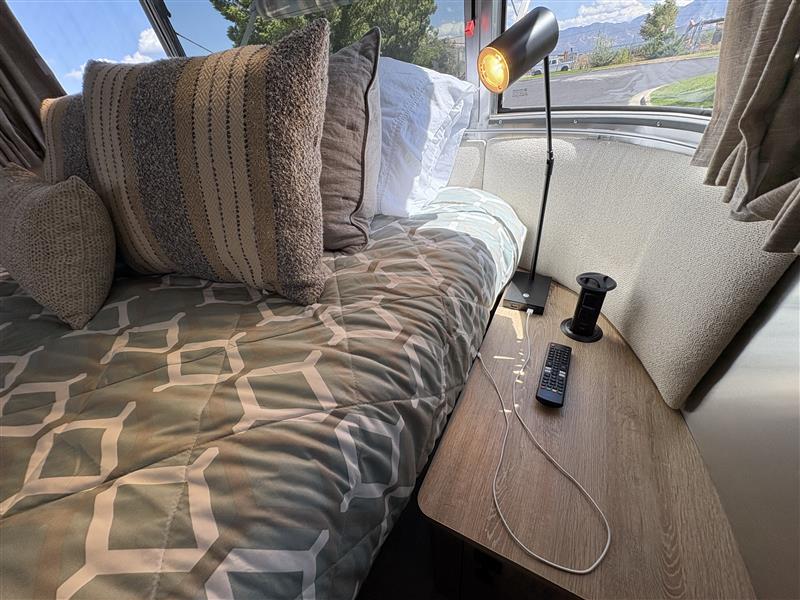 The timeless, beautiful, and comfortable Airstream Pottery Barn Special Edition travel trailer allows you to stay connected while always feeling at home! These trailers feel like an extension of your own home with their elegant décor, and they provide a sanctuary that you can retreat to when you need to recharge surrounded by nature. The luxurious window coverings are made from Pottery Barn's best-selling Emery Linen Curtain Collection, and there is an airline-style table hidden in the sofa's armrest. The door-mounted chalkboard allows you to leave personalized messages for the group, and the built-in spice rack and knife block let you keep everything close at hand while you cook. Plus, each bedroom has Pottery Barn Belgian Flax Linen bedding for extreme comfort. Some of the excellent exterior features include a rearview monitoring system, power awning, a low-pressure gas grill connection, Quietstream climate control, power stabilizer jacks, three rooftop solar panels, and front stone guards.