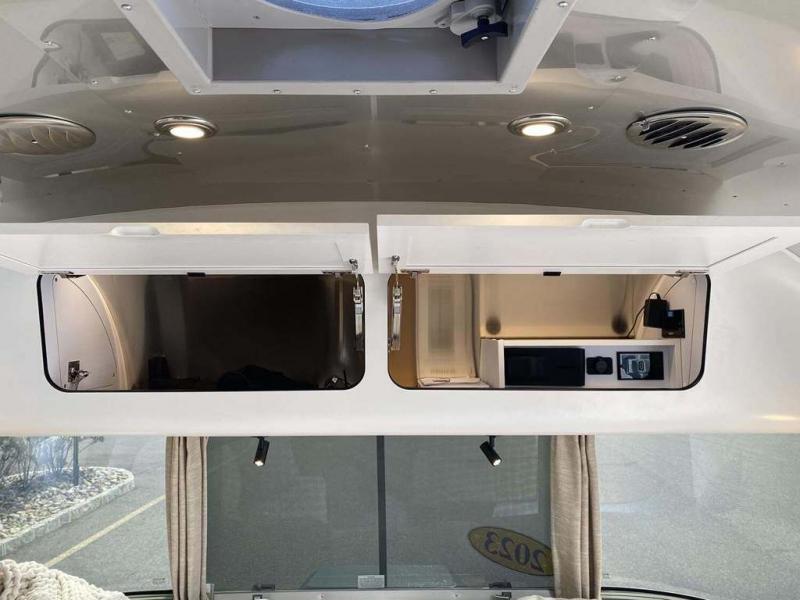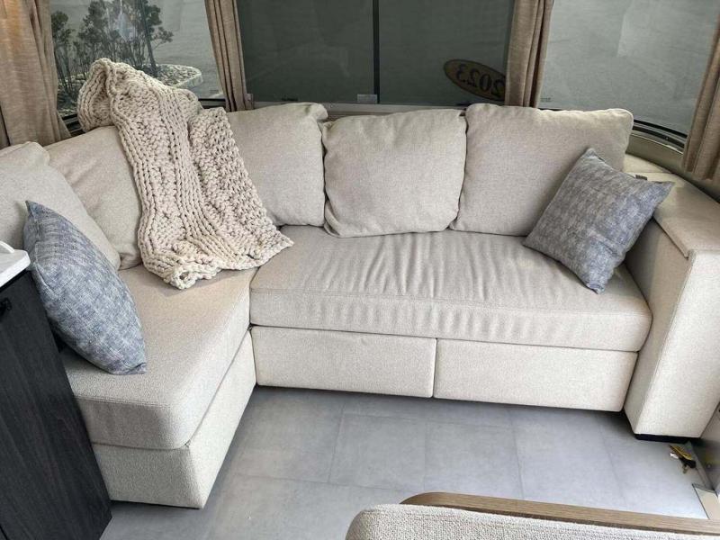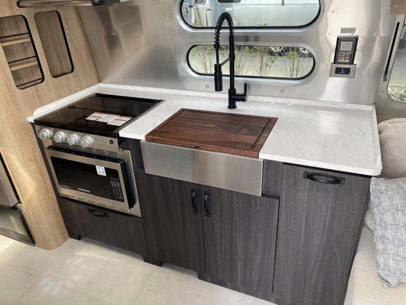 The timeless, beautiful, and comfortable Airstream Pottery Barn Special Edition travel trailer allows you to stay connected while always feeling at home! These trailers feel like an extension of your own home with their elegant décor, and they provide a sanctuary that you can retreat to when you need to recharge surrounded by nature. The luxurious window coverings are made from Pottery Barn's best-selling Emery Linen Curtain Collection, and there is an airline-style table hidden in the sofa's armrest. The door-mounted chalkboard allows you to leave personalized messages for the group, and the built-in spice rack and knife block let you keep everything close at hand while you cook. Plus, each bedroom has Pottery Barn Belgian Flax Linen bedding for extreme comfort. Some of the excellent exterior features include a rearview monitoring system, power awning, a low-pressure gas grill connection, Quietstream climate control, power stabilizer jacks, three rooftop solar panels, and front stone guards.