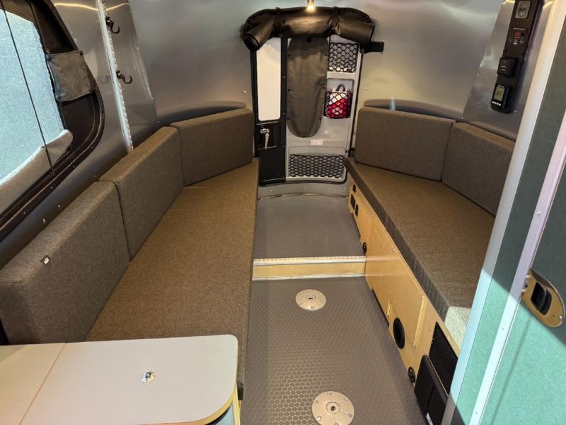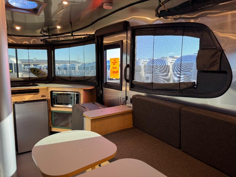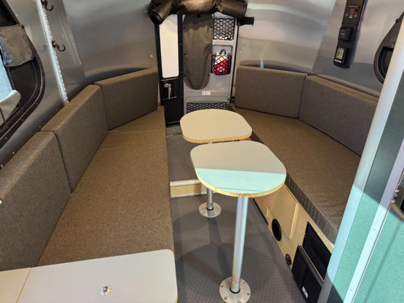 Airstream and REI Co-op have come together perfectly to create the REI Special Edition Basecamp travel trailer. The UV-LED water filtration system will allow you to disinfect your potable water from the 21 gallon onboard tank, and you'll appreciate the recirculating water heater that will provide hot water when you need it and at your preferred temperature. There is seamless, composite flooring that is ultra durable, plus UV coated Birch-Ply cabinetry, panoramic front windows, and ample storage for all your gear. This travel trailer also includes a 3" lift kit, torsion axle suspension, and Nev-R-Adjust brakes for smooth towing, plus an optional solar package that will allow you to go off-grid when the adventure calls for it. And you're going to love the REI Co-op + Airstream Basecamp kit that includes Camper Dreamer chairs, kitchen utensils from OXO, a rechargeable lantern, towels, and much more. What's even better is the dedicated storage inside for these items!