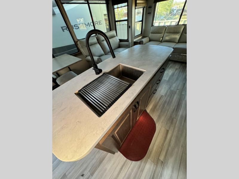 The Paradigm fifth wheels by Alliance RV are functional, high-quality, and luxurious for an unforgettable camping experience. There are three A/C units and a 40K BTU furnace to keep you comfortable year around, and you'll appreciate additional convenient amenities, like the all-in-one enclosed/heated utility center and the color coded and numbered wiring. A Roto-Flex pin box comes standard for hassle-free towing, along with Super-G 4,400 lb. rated tires and Dexter 7,000 lb. axles. You'll love the kitchen with its LG solid surface countertops and Insignia range, plus there is LED motion lighting in the pantry and a Maxx fan with a rain sensor to keep everything fresh when making dinner. Each model also includes an HD Smart TV in the living room and bedroom, plus a Winegard Air 360 antenna to keep you connected to the outside world. And of course there are a variety of options you can choose from to further customize your fifth wheel; dual pane windows, Super Solar Plus, slide out awning toppers, and generator prep or a generator to name a few!