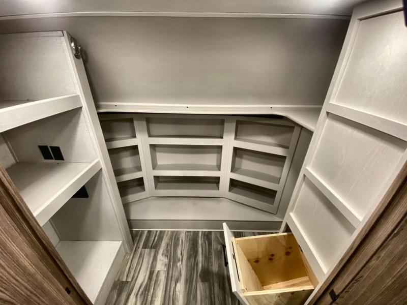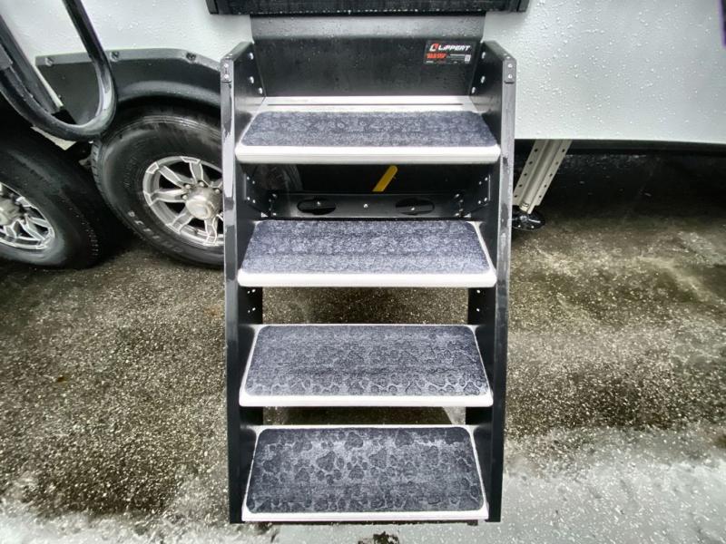 Whether you decide to be a full-timer or a long-trip traveler, this Paradigm offers so many comforts and conveniences you will love! The large full bathroom might be the reason you decide to be a new owner because you will have a large 61" x 30" shower to get cleaned up in, linen storage, and a walk-in closet with a hamper, shelves, and a space prepped for an optional washer/dryer. The bedroom allows you to sleep like a king and gives you extra floor space with the two slides, and there is storage in the flip-top dresser and under the seat, plus you can watch the Smart TV. The space saving sliding doors offer style as well. The cook will love all the residential appliances, you can even choose the residential refrigerator option. The kitchen island gives you a stainless steel farm sink and a place to add a dishwasher option. The half bath is super convenient just like the entry sitting bench/coat rack and closet. And you can relax on the sleeper sofa or the dual recliner love seat. There is so much more to see!