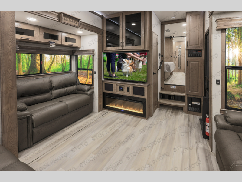 The Paradigm fifth wheels by Alliance RV are functional, high-quality, and luxurious for an unforgettable camping experience. There are three A/C units and a 40K BTU furnace to keep you comfortable year around, and you'll appreciate additional convenient amenities, like the all-in-one enclosed/heated utility center and the color coded and numbered wiring. A Roto-Flex pin box comes standard for hassle-free towing, along with Super-G 4,400 lb. rated tires and Dexter 7,000 lb. axles. You'll love the kitchen with its LG solid surface countertops and Insignia range, plus there is LED motion lighting in the pantry and a Maxx fan with a rain sensor to keep everything fresh when making dinner. Each model also includes an HD Smart TV in the living room and bedroom, plus a Winegard Air 360 antenna to keep you connected to the outside world. And of course there are a variety of options you can choose from to further customize your fifth wheel; dual pane windows, Super Solar Plus, slide out awning toppers, and generator prep or a generator to name a few!