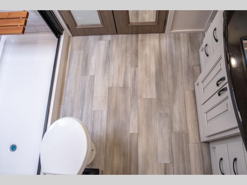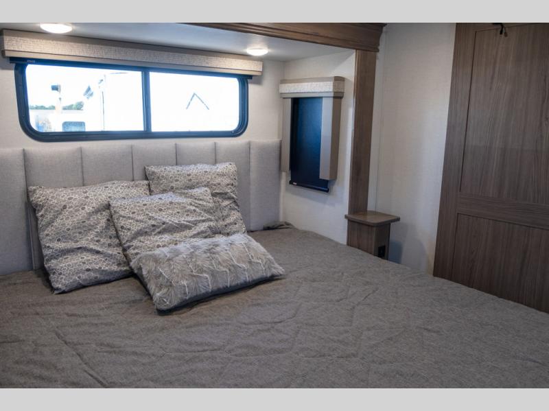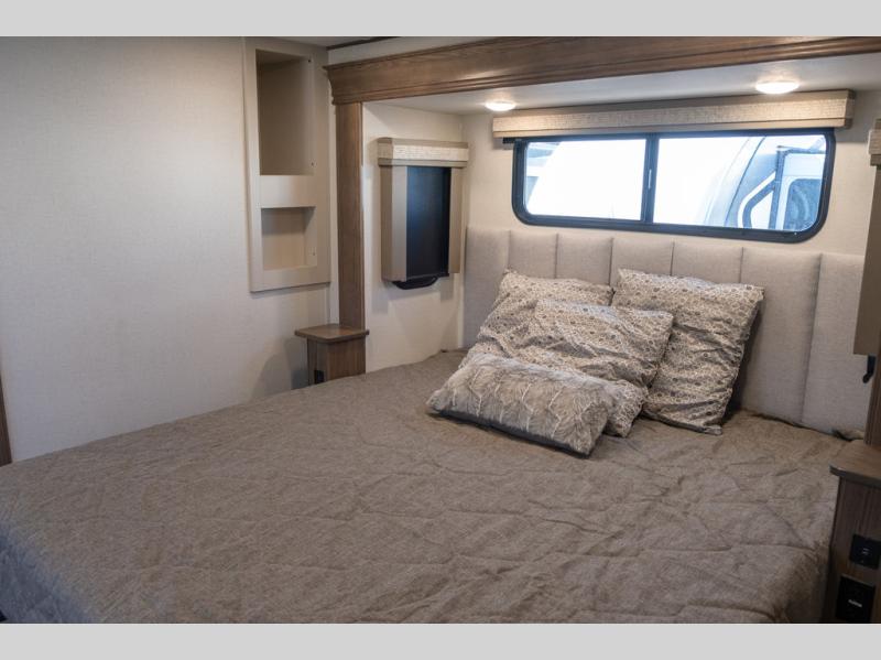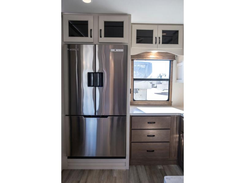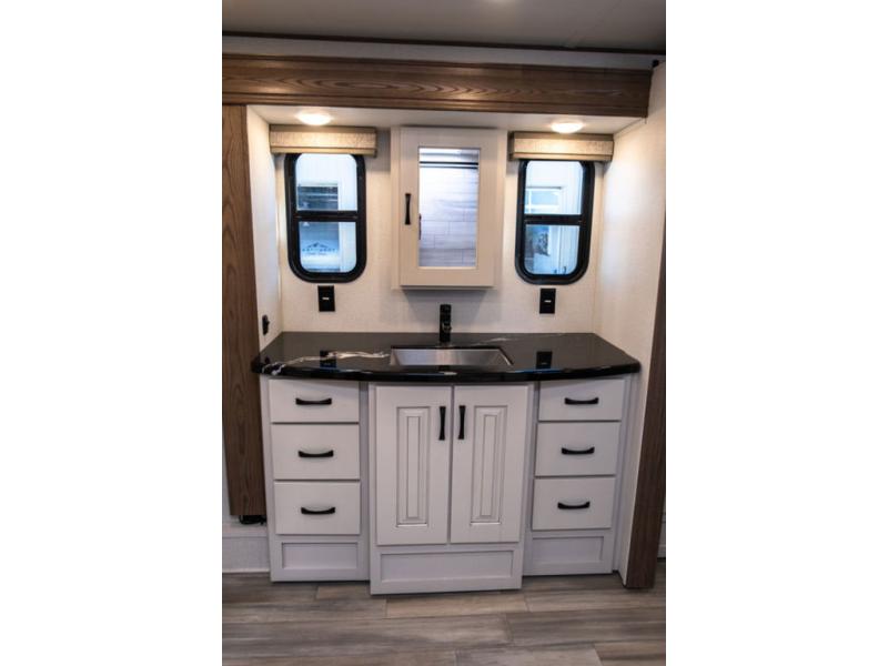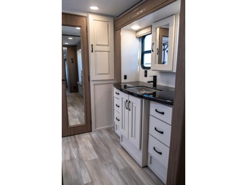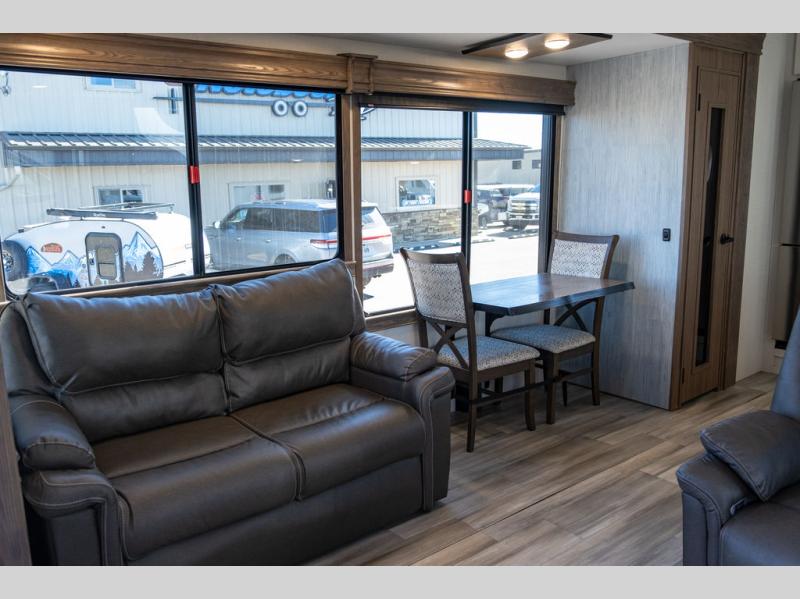 The Paradigm fifth wheels by Alliance RV are functional, high-quality, and luxurious for an unforgettable camping experience. There are three A/C units and a 40K BTU furnace to keep you comfortable year around, and you'll appreciate additional convenient amenities, like the all-in-one enclosed/heated utility center and the color coded and numbered wiring. A Roto-Flex pin box comes standard for hassle-free towing, along with Super-G 4,400 lb. rated tires and Dexter 7,000 lb. axles. You'll love the kitchen with its LG solid surface countertops and Insignia range, plus there is LED motion lighting in the pantry and a Maxx fan with a rain sensor to keep everything fresh when making dinner. Each model also includes an HD Smart TV in the living room and bedroom, plus a Winegard Air 360 antenna to keep you connected to the outside world. And of course there are a variety of options you can choose from to further customize your fifth wheel; dual pane windows, Super Solar Plus, slide out awning toppers, and generator prep or a generator to name a few!