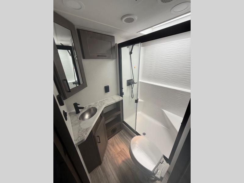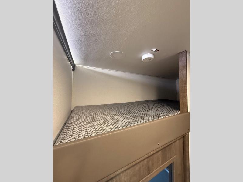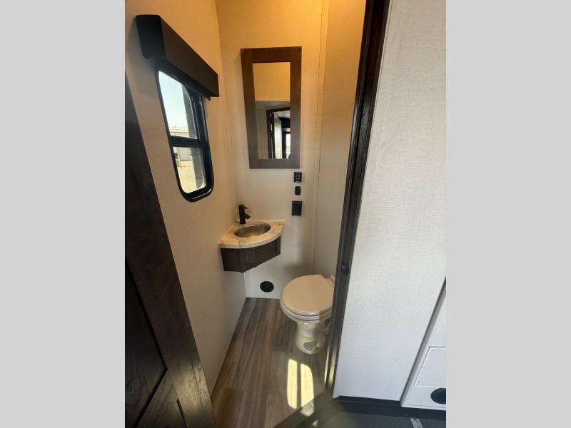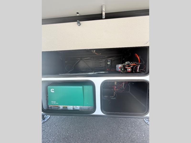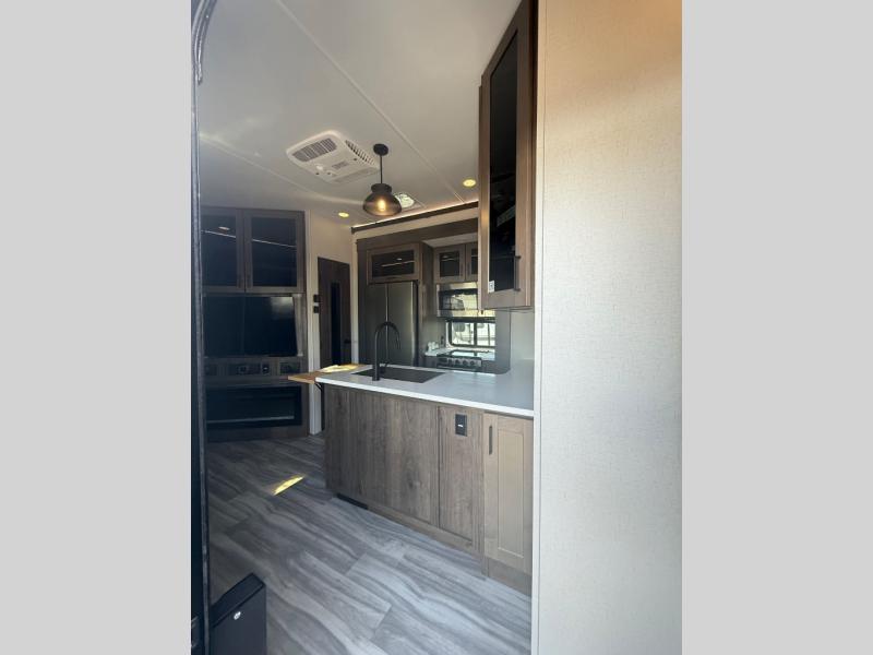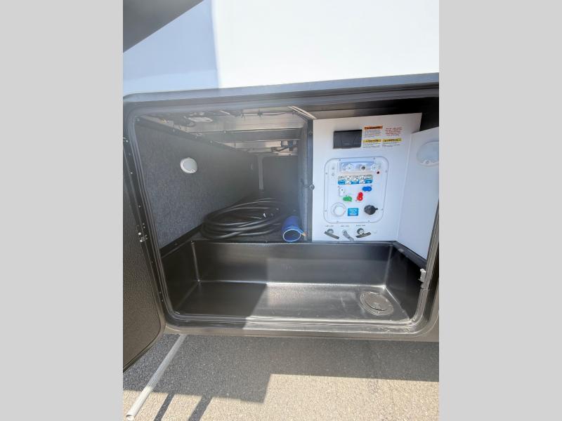 You won't believe all that this toy hauler has to offer! From the front private bedroom with a king bed slide for more walking around space and an entrance into the dual entry bathroom to the rear HappiJac roll-over sofas and two areas prepped to add optional washer and dryers. The 13' garage space also has one of the dual entry doors, a half bathroom, a loft, and a 8' weather resistant ramp door. The kitchen has plenty of countertop space and a three burner cooktop for you to prepare your best meals. After a fun day on the trails, relax on the sofa slide and watch your favorite movie on the 50" HDTV and fire up the fireplace below it for a truly comfortable evening!