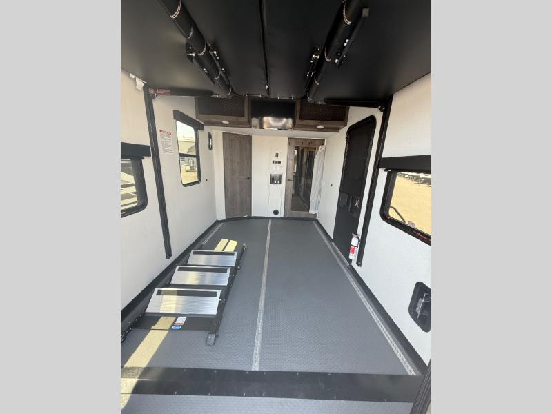 You can bring your toys with you wherever you go with any one of these Alliance RV Valor toy haulers! They are adventure-ready with a quality build from the walk on roof with seamless PVC roof covering to the commercial grade vinyl flooring and MorRyde CRE3000 suspension system. The Performance Running Gear package comes with a 101" wide-body benchmark chassis platform, 7,000 lb. Dexter axles, and a pass-through basement storage with an additional front compartment for all your gear. You can even go off-gridding thanks to the Off the Grid Pack that has two 320 watt solar panels, generator prep, a 40 amp charge controller, and a 100 amp hour lithium iron phosphate battery, plus a battery monitor system. Come find the right one for you today!