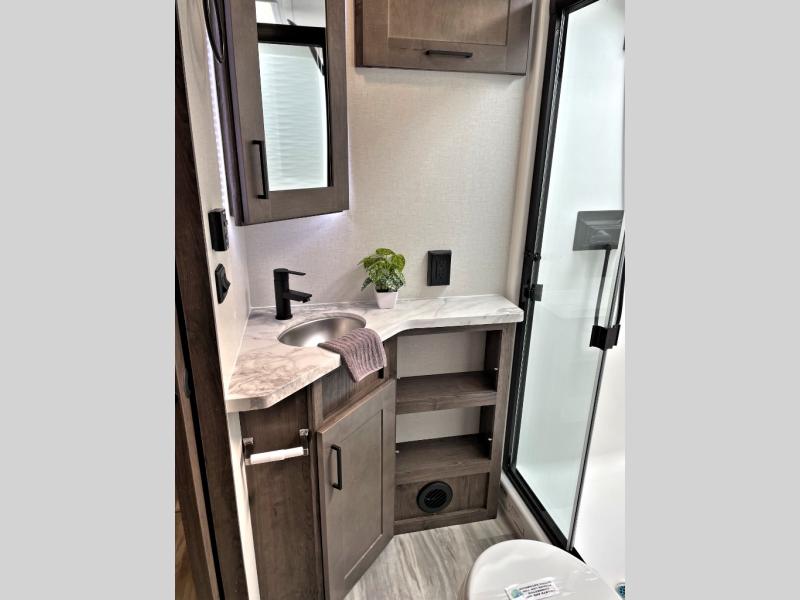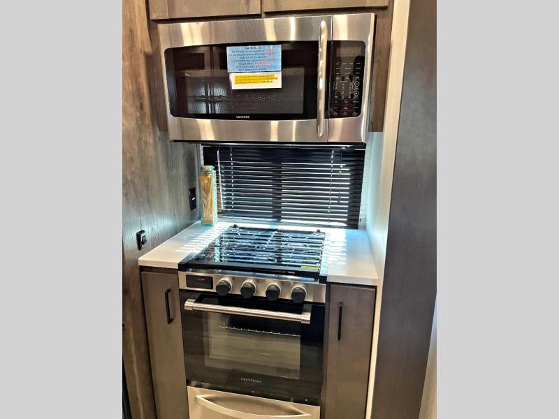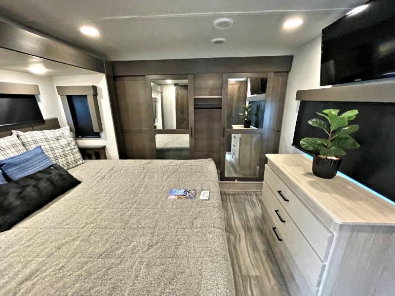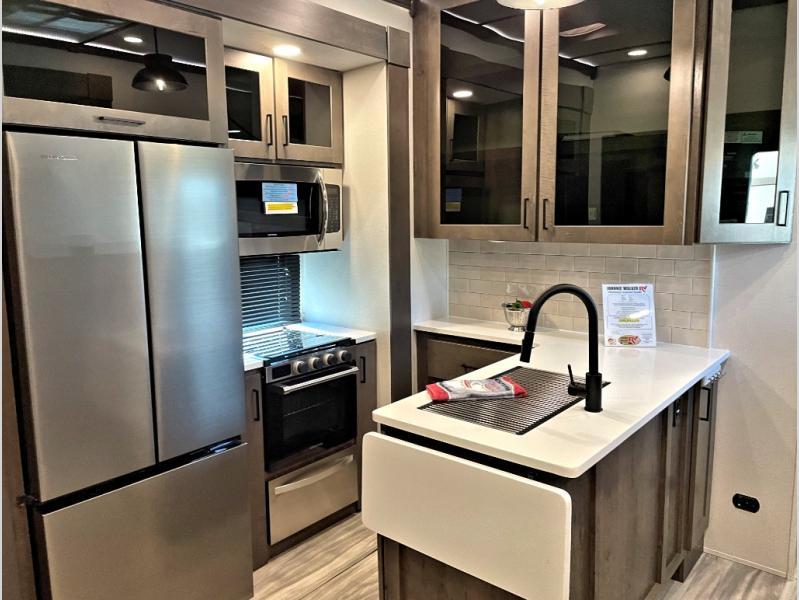 You won't believe all that this toy hauler has to offer! From the front private bedroom with a king bed slide for more walking around space and an entrance into the dual entry bathroom to the rear HappiJac roll-over sofas and two areas prepped to add optional washer and dryers. The 13' garage space also has one of the dual entry doors, a half bathroom, a loft, and a 8' weather resistant ramp door. The kitchen has plenty of countertop space and a three burner cooktop for you to prepare your best meals. After a fun day on the trails, relax on the sofa slide and watch your favorite movie on the 50" HDTV and fire up the fireplace below it for a truly comfortable evening!