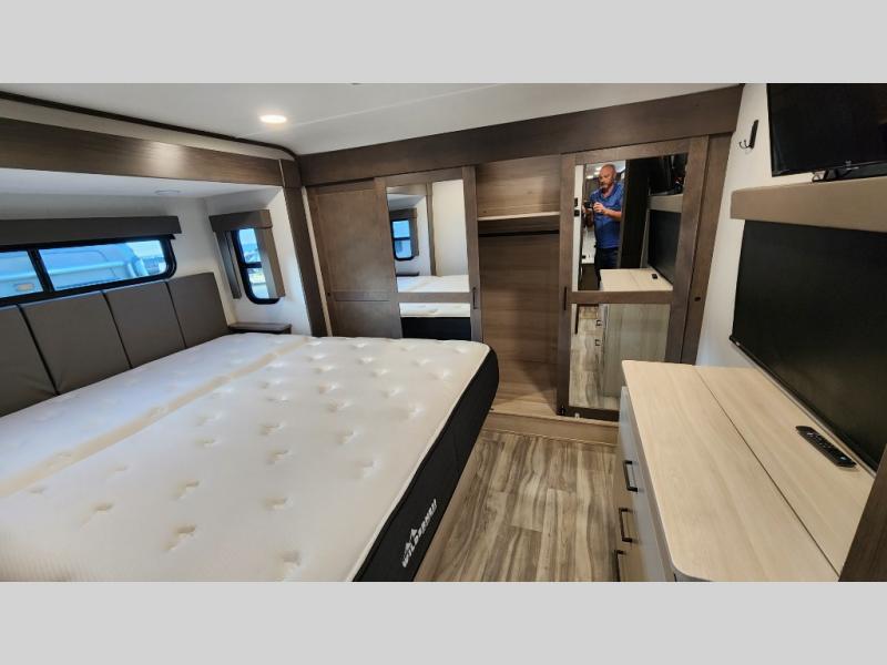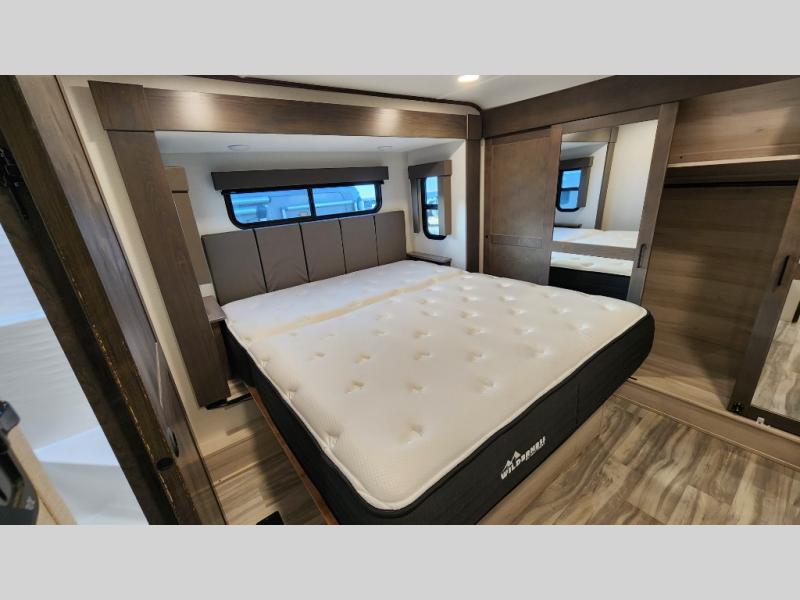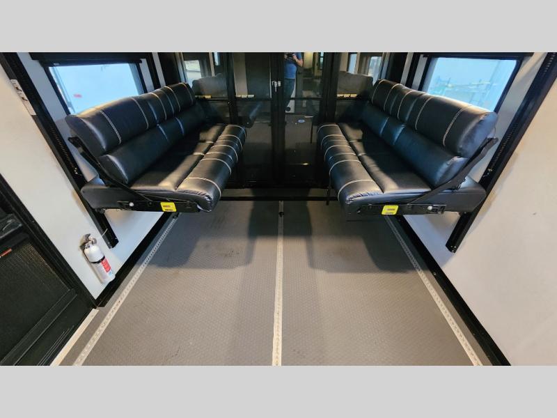 You can bring your toys with you wherever you go with any one of these Alliance RV Valor toy haulers! They are adventure-ready with a quality build from the walk on roof with seamless PVC roof covering to the commercial grade vinyl flooring and MorRyde CRE3000 suspension system. The Performance Running Gear package comes with a 101" wide-body benchmark chassis platform, 7,000 lb. Dexter axles, and a pass-through basement storage with an additional front compartment for all your gear. You can even go off-gridding thanks to the Off the Grid Pack that has two 320 watt solar panels, generator prep, a 40 amp charge controller, and a 100 amp hour lithium iron phosphate battery, plus a battery monitor system. Come find the right one for you today!