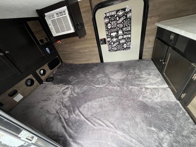 Hitch up and hit the road quick and easy with just about any tow vehicle. This lightweight Bushwhacker model is perfect for two with a comfy 60" x 78" mattress for sleeping, and plenty of storage. The outside shower allows you to rinse off any evidence of your daily adventure before going to sleep, and the onboard griddle and sink makes it easy to create some hearty camp meals so you can do it all over again the next day! You will appreciate the A/C unit so that you can be comfortable even on the hottest summer days.