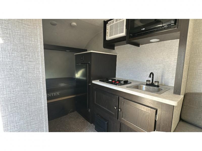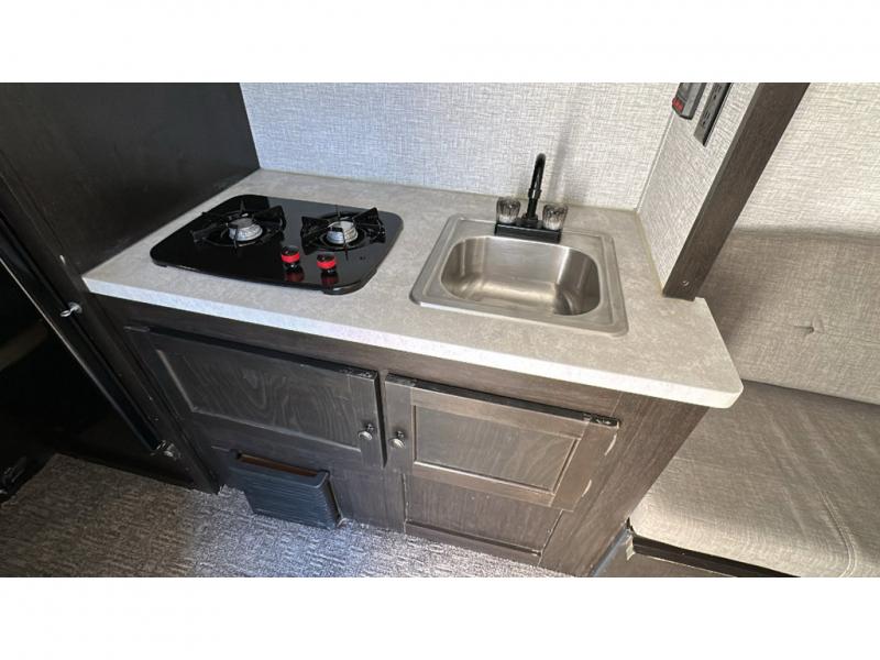 You are going to love traveling with this Bushwhacker Plus in tow! Once at your campsite, you can quickly start exploring and having fun because this teardrop is ready to go. You will be happy you traded in your sleeping bag for this queen bed which will have you waking up refreshed. The Wet Bath included means no public facilities in the middle of the night, and you can choose to whip up your flapjacks on the outside pull-out griddle if you like, and cleanup will be simple with the outdoor sink. Being able to cook inside or out is a plus especially on those perfect camp days! When inside, you can relax on the 60" jackknife sofa, and it will simply make into a bed for added overnight guests.
