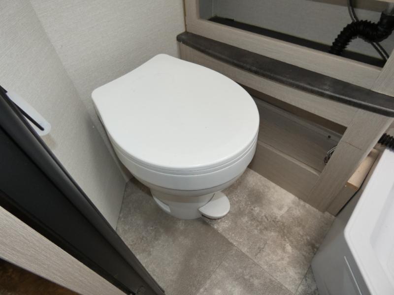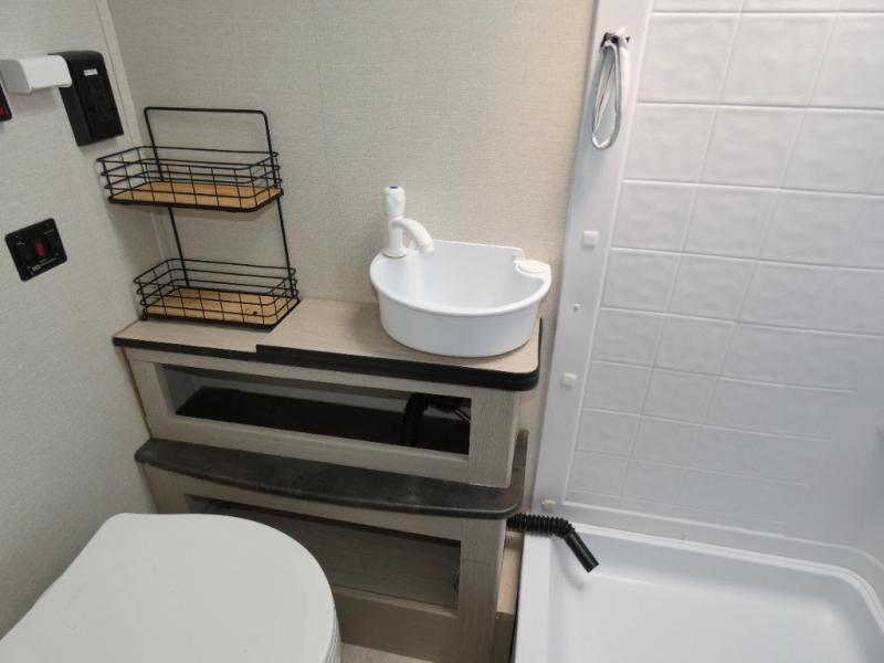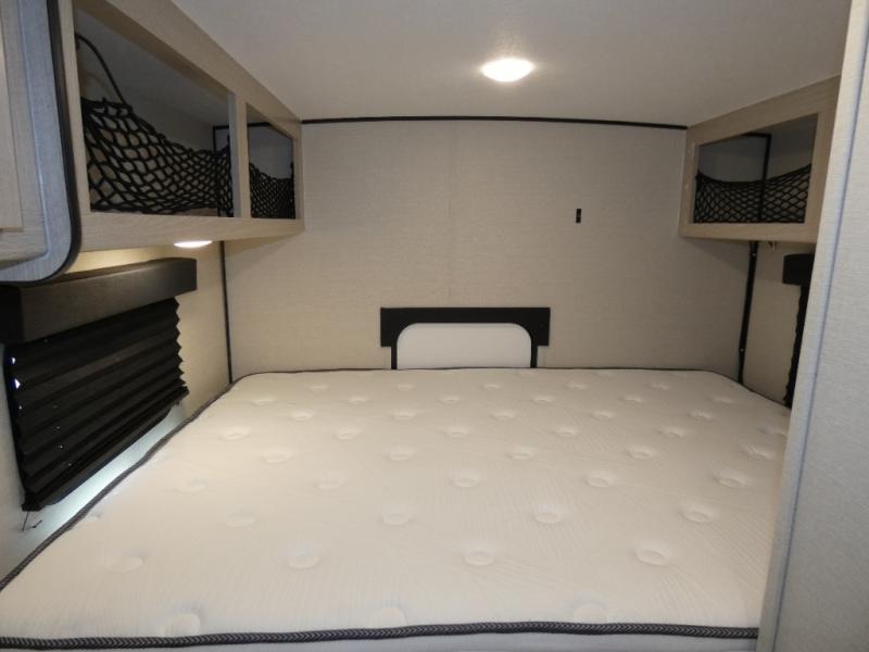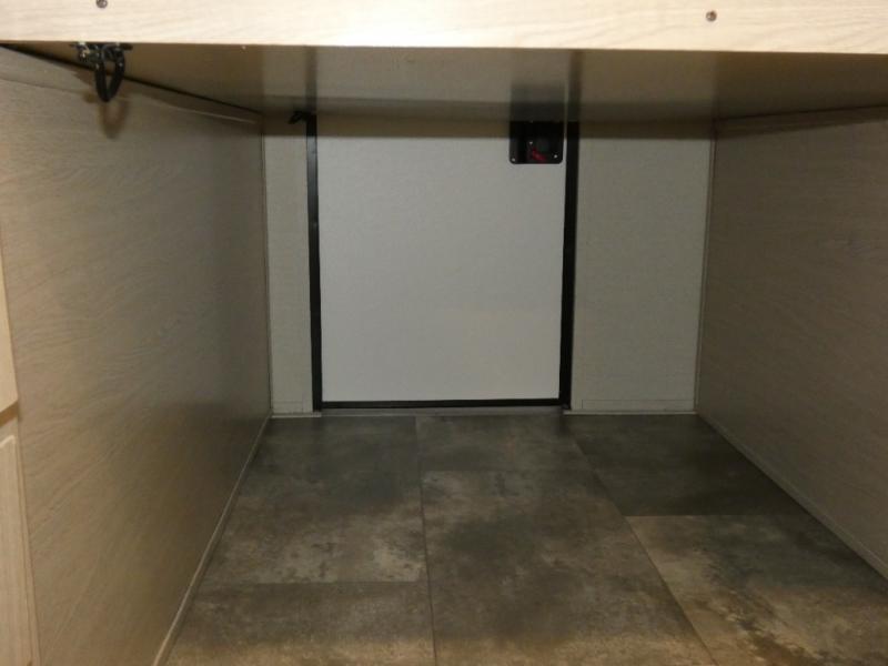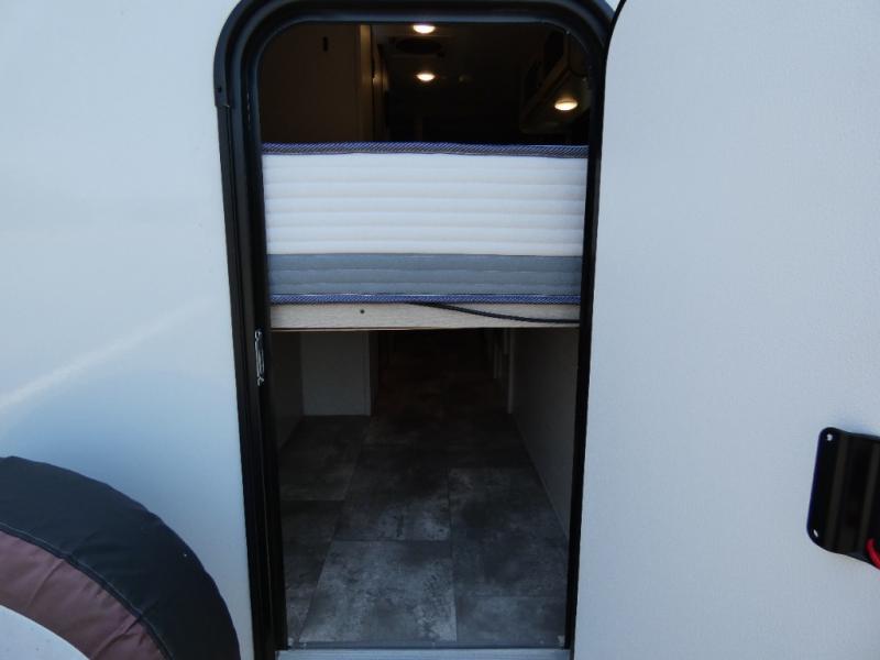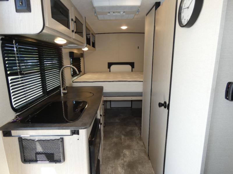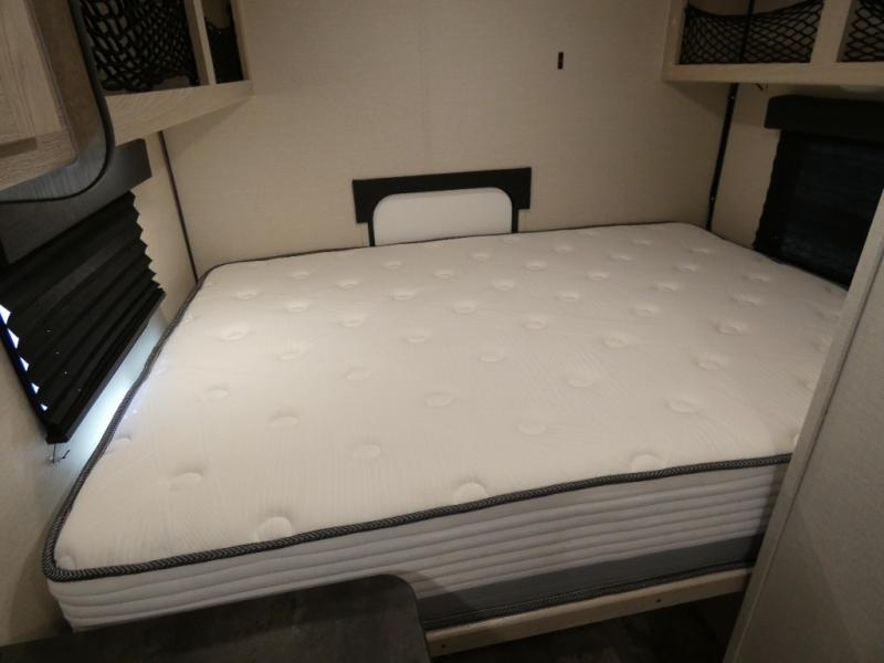 When you are ready to camp, this trailer is easy to load and tow to your favorite sites. The rear storage door allows you to carry items inside the trailer and you can leave the lifting section securely up or down depending on the space you need. There is more storage along the exterior, and you will find overhead cabinets inside, linen space in the full bathroom and your cold food can be placed in the 6 cu. ft. refrigerator. The cook will have a two burner cooktop plus a microwave inside, and a camp kitchen outside to keep everyone fed. Plus you can dine at the booth dinette which also provides sleeping space.