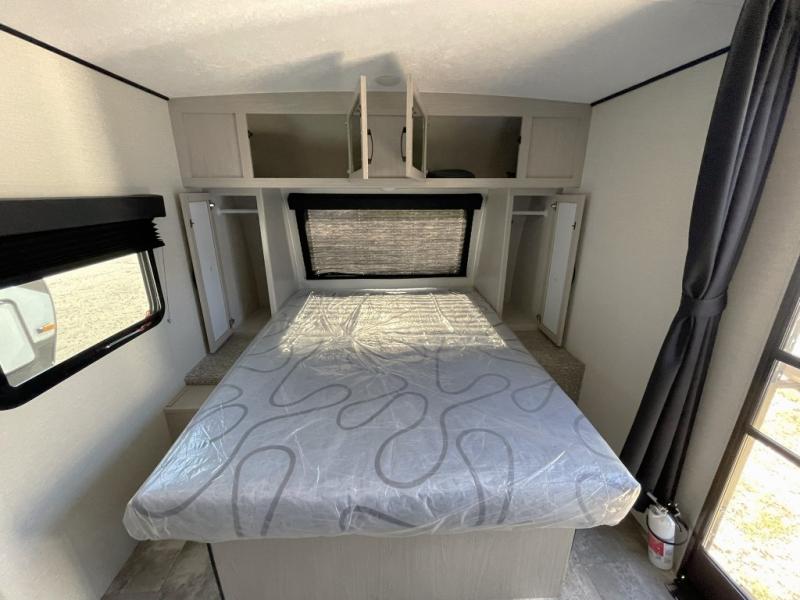 Enjoy must-have conveniences like magnetic baggage doors, outside speakers, a WiFi-ready digital TV antenna, and an exterior hot and cold shower. Whether youre heading to the mountains or the lake, this trailer is ready to take you there in comfort and style.