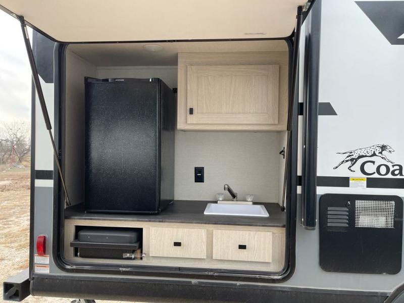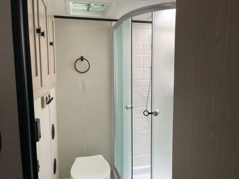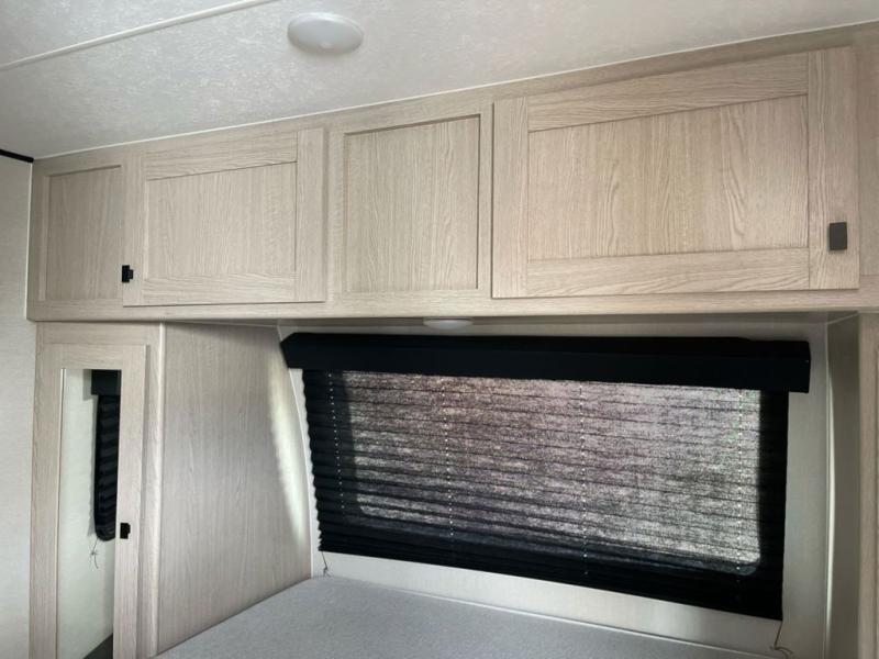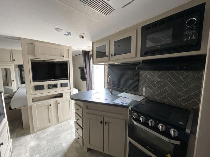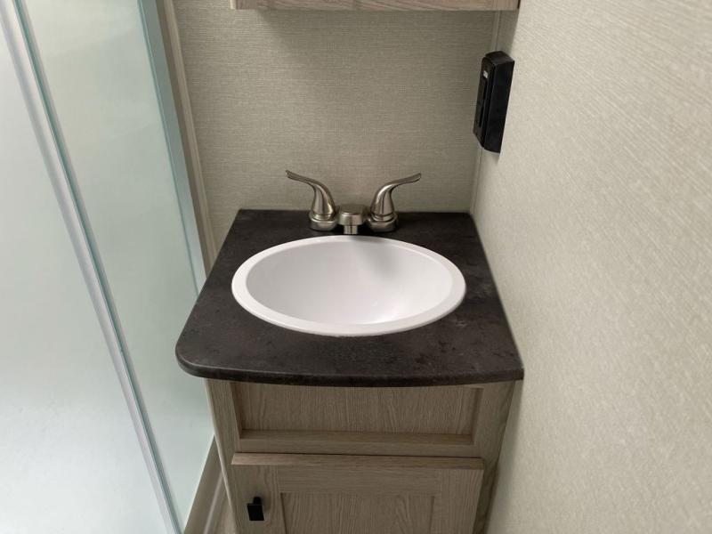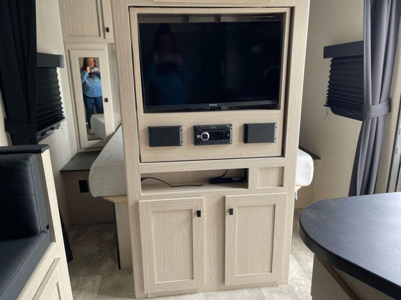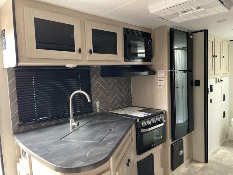 Easy to tow so you can get up and go! The U-shaped dinette slide will not only be a favorite spot to dine and play games, but will also double as additional sleeping space. There is a full interior kitchen, plus an outdoor kitchen that is perfect for breakfast outdoors. When you're ready to come in for the night, head to the spacious full rear bath to clean up, and the front bedroom will make this unit feel more like home with its queen bed and dual wardrobes!