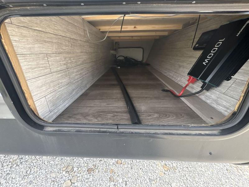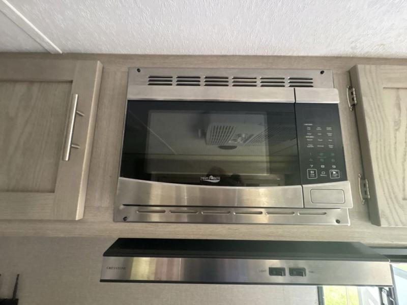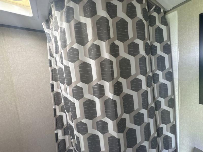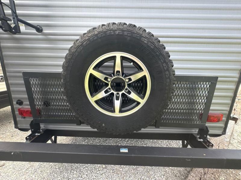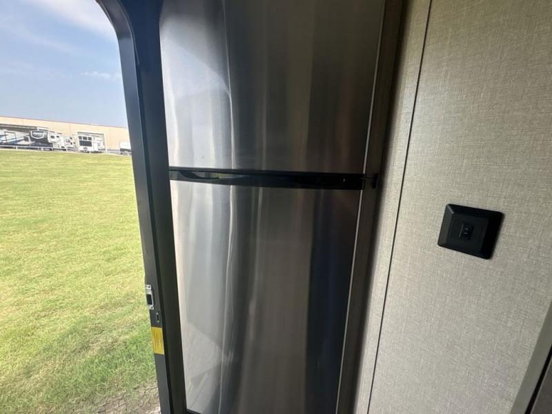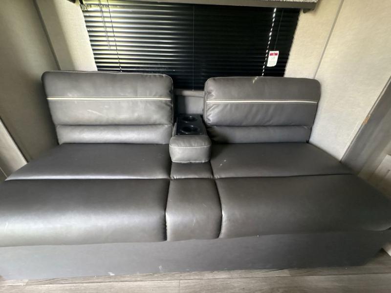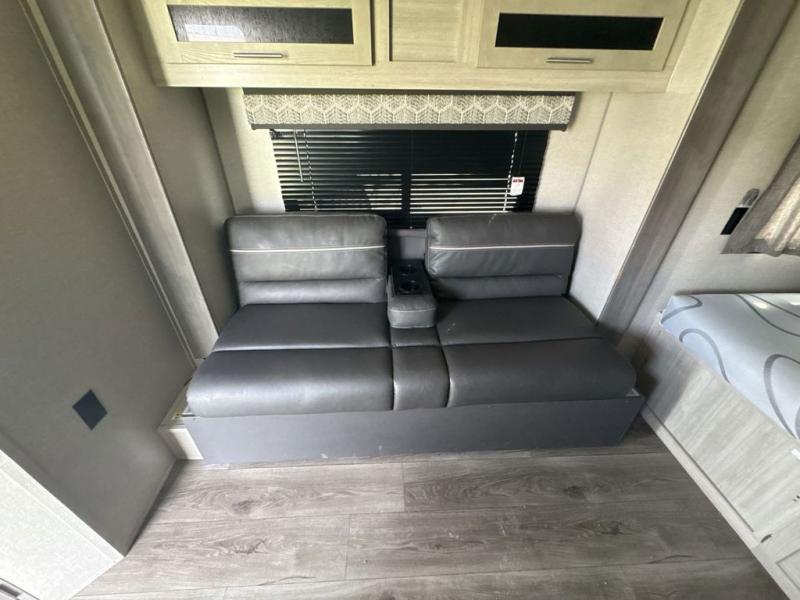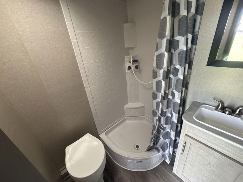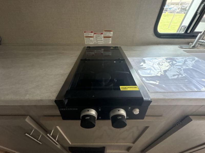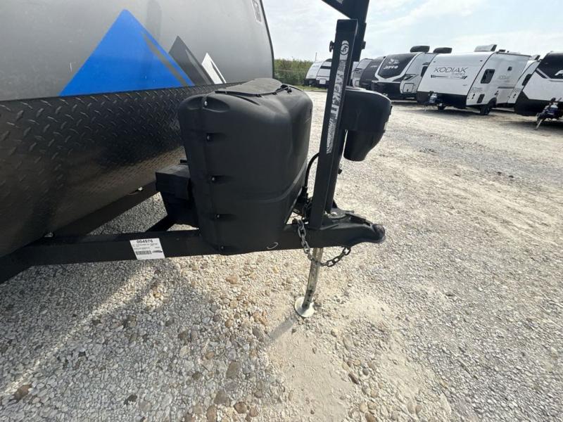Get ready for adventure either at a local RV park or off-grid as you enjoy the outdoors. You will be able to return to your own accommodations in this trailer with a spacious interior thanks to the single slide that offers more elbow room and floor space to move about, and plenty of space to stretch your legs, and dine. This area is also great for an overnight guest or two small children to sleep on. Spend your days outside swimming at the lake or hiking trails to return to a rear corner bath with a 32" x 32" radius shower that will allow you to get cleaned up before bed. You will find an RV queen bed with a countertop at the foot of the bed which is a perfect spot to drop your phones for the night or stash your reading material, alarm clock and/or purse/wallet. This model also includes a heavy-duty table to use indoors or outdoors!