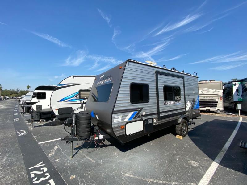 With any Catalina Expedition travel trailer by Coachmen, you will have a lightweight RV that was built with a cambered structural steel l-beam frame, a seamless Alpha roof membrane, fiberglass insulation throughout. There are oversized off-road fender flares, all terrain tires, and a premium exterior graphics package. On the outside, an electric awning includes a multicolor LED strip with a remote offering a covered outdoor living area that can be utilized during the day or night, plus a multizonal JBL premium exterior speaker to listen to tunes. The interior provides Congoleum woodplank linoleum flooring, seamless Thermofoil countertops throughout, hard valance window treatments, and so much more! It's time to start your expedition!