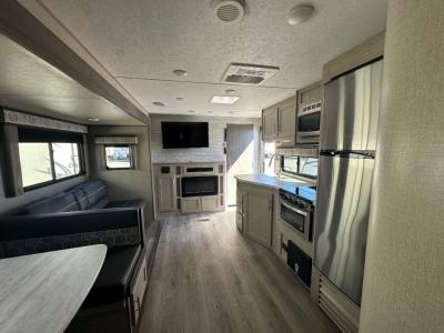 Each Catalina Legacy travel trailer by Coachmen is constructed with a cambered structural steel I-beam frame for added strength and support, plus an enclosed and fully sealed corrugated underbelly to extend your camping season. There is also a seamless Alpha room membrane, R-7 insulation throughout, full length frame outriggers, plus many more durable construction materials. You will love the 6' 9" interior height, along with Congoleum woodplank linoleum flooring, seamless Thermofoil countertops, and hard valance window treatments. There is an RV-Link 4G LTE connectivity with WiFi booster and an extender to keep you connected to the outside world as you camp, and the JBL Aura cube multi-zone function media center is sure to keep you entertained all weekend long. Choose a Catalina Legacy today!