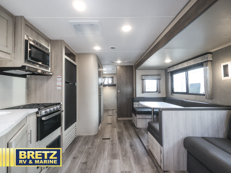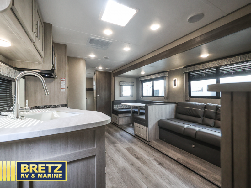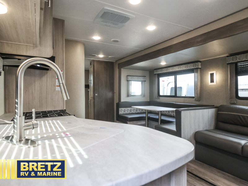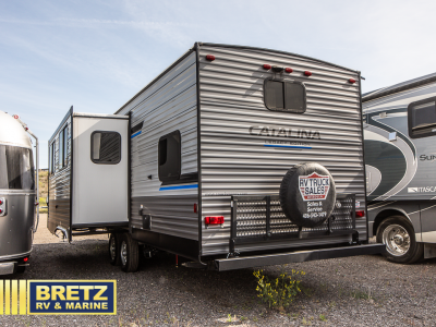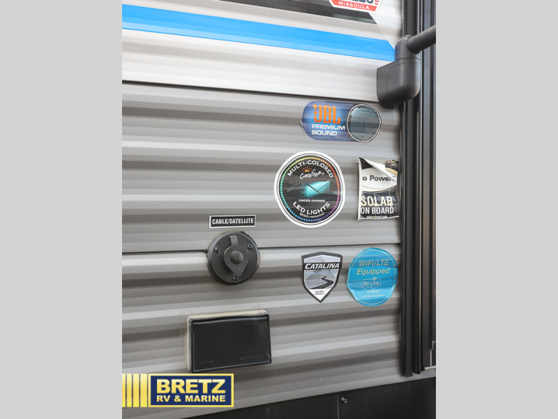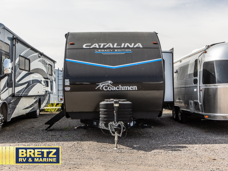 Each Catalina Legacy travel trailer by Coachmen is constructed with a cambered structural steel I-beam frame for added strength and support, plus an enclosed and fully sealed corrugated underbelly to extend your camping season. There is also a seamless Alpha room membrane, R-7 insulation throughout, full length frame outriggers, plus many more durable construction materials. You will love the 6' 9" interior height, along with Congoleum woodplank linoleum flooring, seamless Thermofoil countertops, and hard valance window treatments. There is an RV-Link 4G LTE connectivity with WiFi booster and an extender to keep you connected to the outside world as you camp, and the JBL Aura cube multi-zone function media center is sure to keep you entertained all weekend long. Choose a Catalina Legacy today!