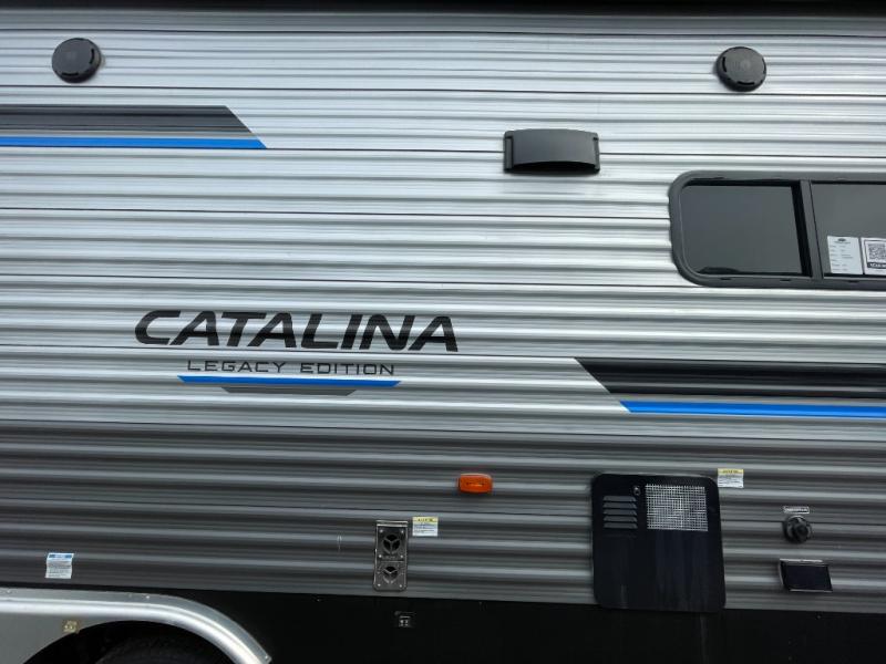 Each Catalina Legacy travel trailer by Coachmen is constructed with a cambered structural steel I-beam frame for added strength and support, plus an enclosed and fully sealed corrugated underbelly to extend your camping season. There is also a seamless Alpha room membrane, R-7 insulation throughout, full length frame outriggers, plus many more durable construction materials. You will love the 6' 9" interior height, along with Congoleum woodplank linoleum flooring, seamless Thermofoil countertops, and hard valance window treatments. There is an RV-Link 4G LTE connectivity with WiFi booster and an extender to keep you connected to the outside world as you camp, and the JBL Aura cube multi-zone function media center is sure to keep you entertained all weekend long. Choose a Catalina Legacy today!