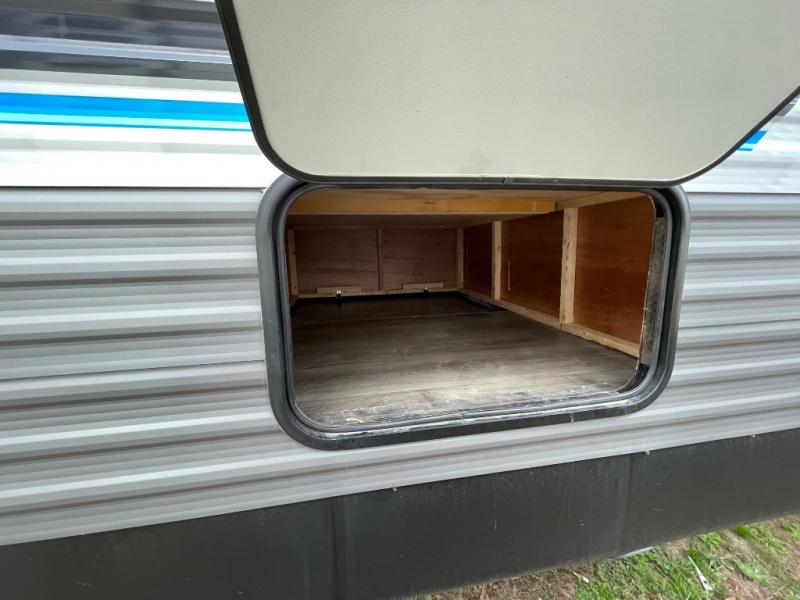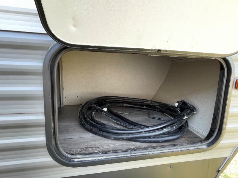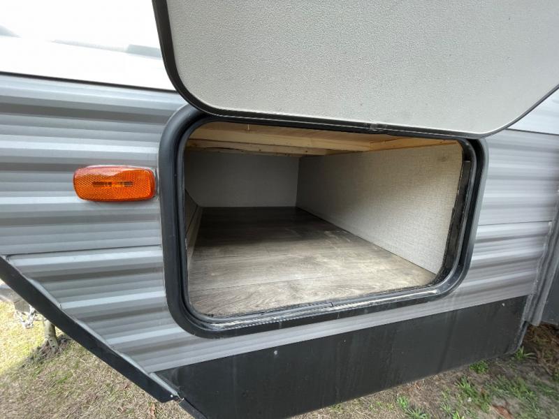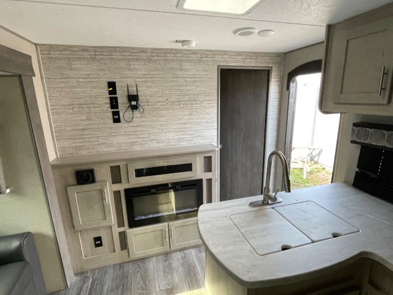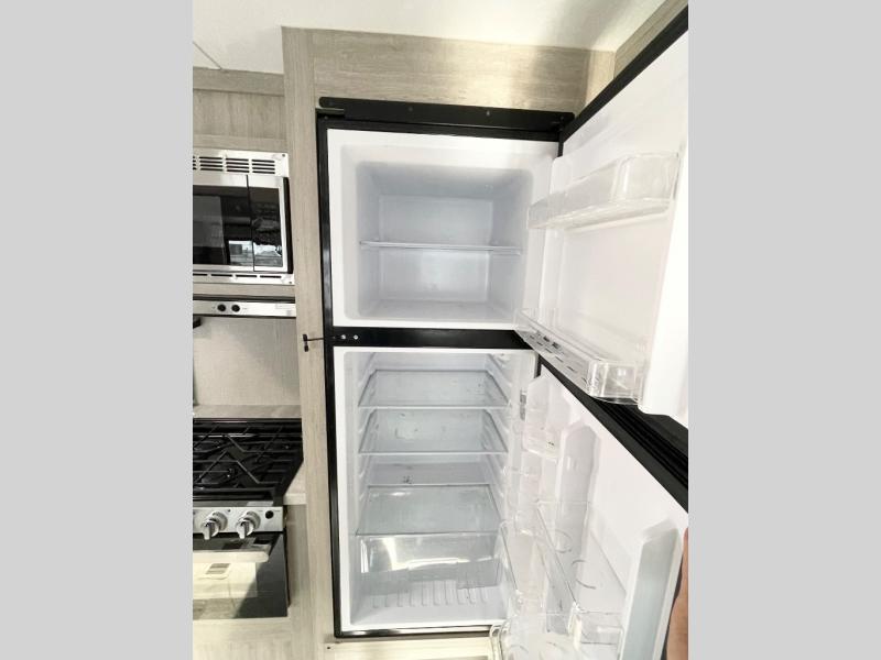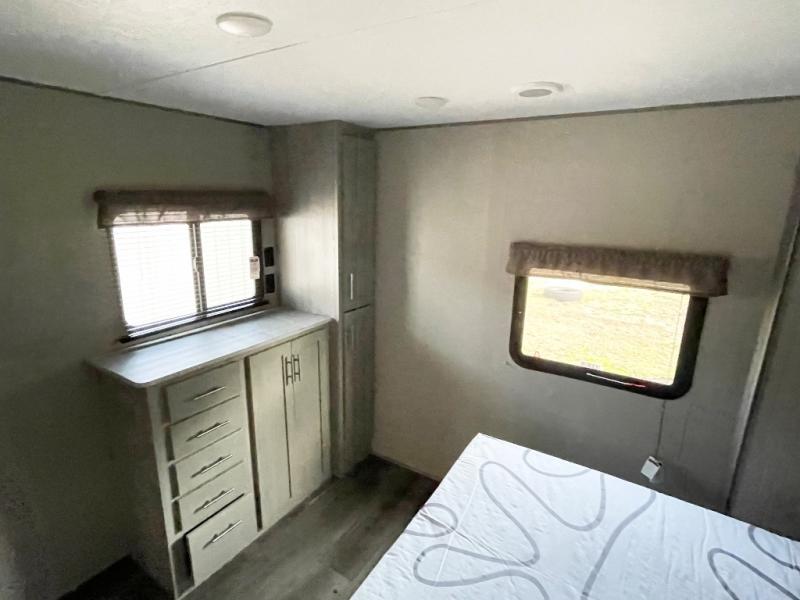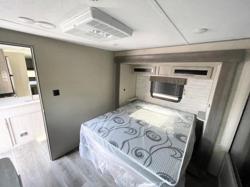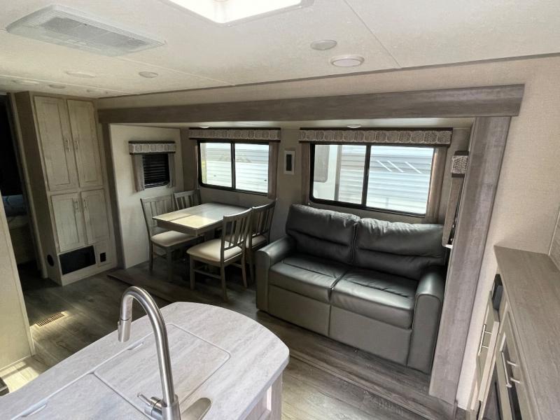 This family-friendly trailer offers lots of floor space thanks to the triple slides throughout! You and your family will love the combined living and kitchen area with a slide out booth dinette and a sofa with drink holders. The L-shaped kitchen counter allows the cook to make meals without moving for anyone trying to get to the full bathroom or the rear bunkhouse. The kids will have their own privacy, two bunk beds, a COA cube futon and the slide offers more floor space to spread out. The front private bedroom allows you to sleep like a queen, and offers a large closet for your clothing and another closet prepped for a washer/dryer. And don't forget about the full size camper kitchen and the 21' power awning with multicolor LED lights when you are outside.
