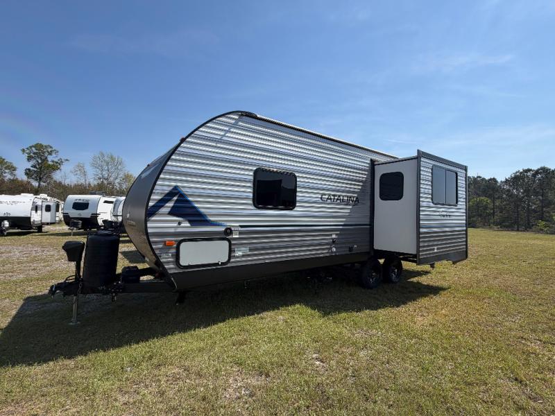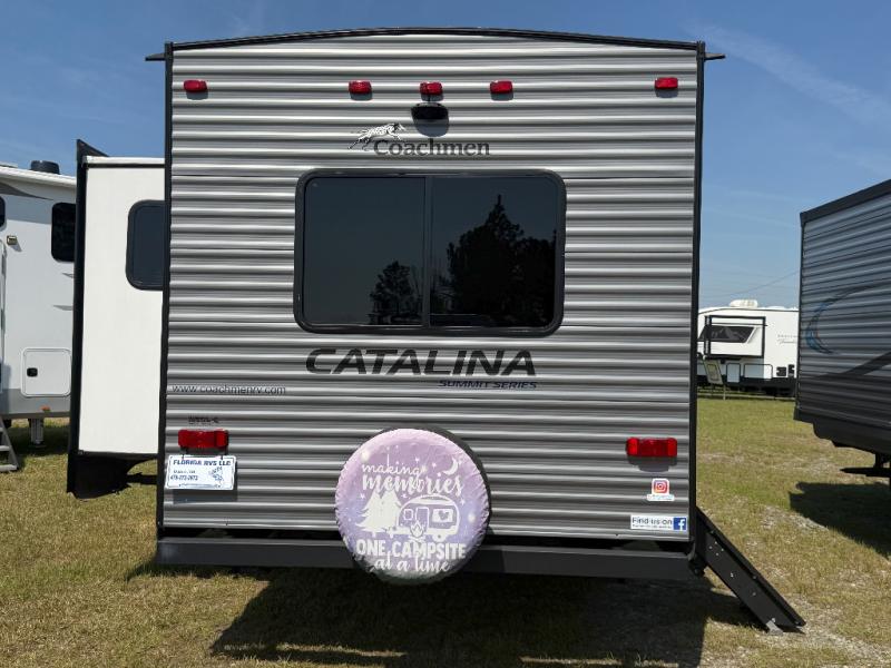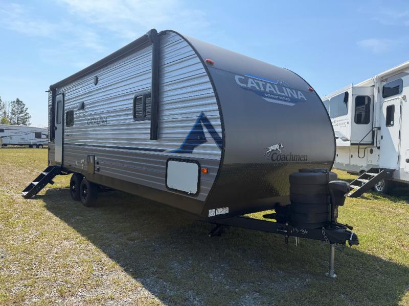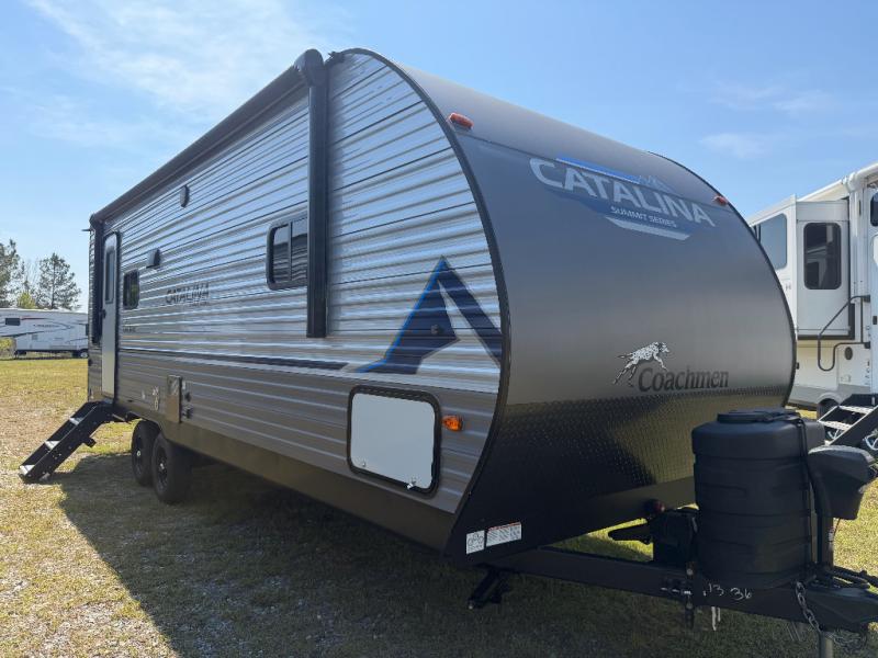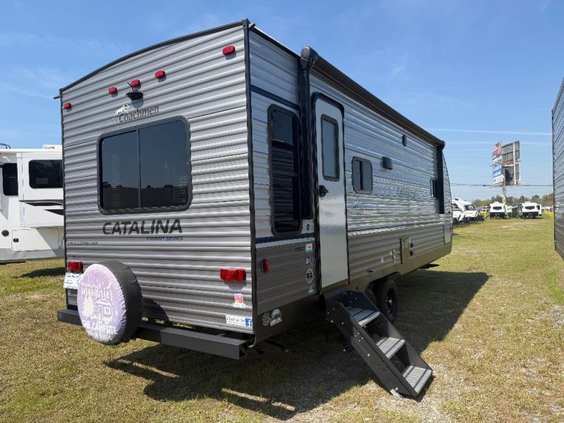 With any Catalina Summit Series by Coachmen you will enjoy an affordable travel trailer packed with at-home comforts! The solid construction includes new road defense chassis powder coating, a seamless Alpha roof membrane, and full length frame outriggers for maximum support and durability. Dexter EZ lube axles with leaf spring suspension and self adjusting brakes provide smooth towing from home to campground, and the premium exterior graphics package is sure to turn heads as you travel down the highway. You will love the features included from the five packages, such as a JBL audio system, magnetic baggage door latches, 4,000 lumen interior touch lighting, LCI One Control, and the list goes on!