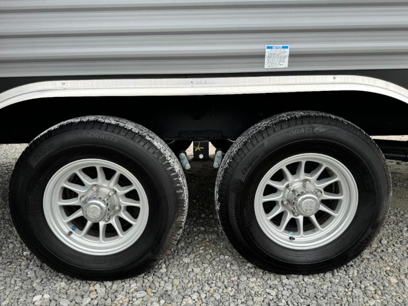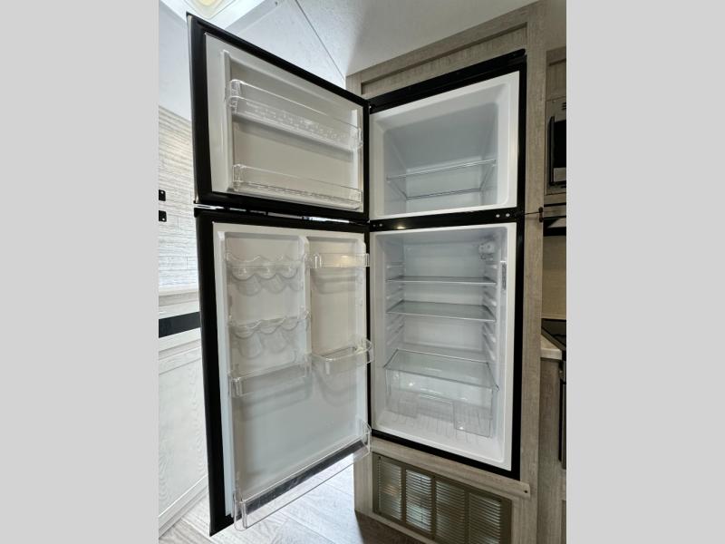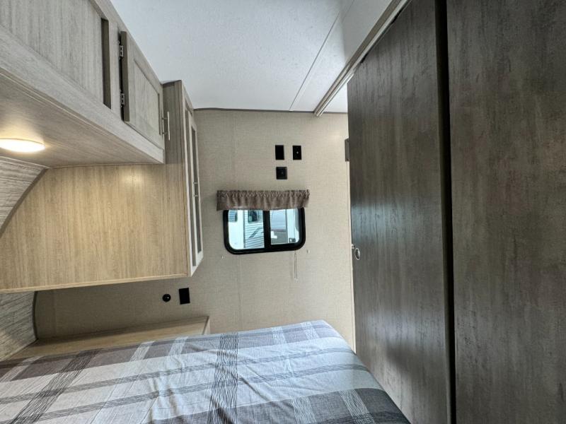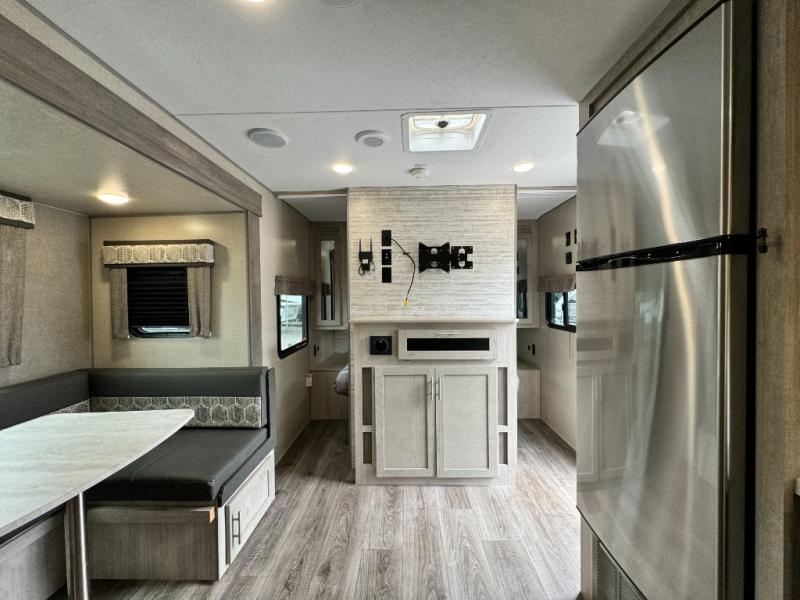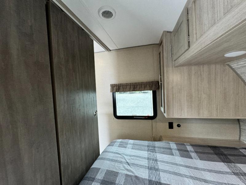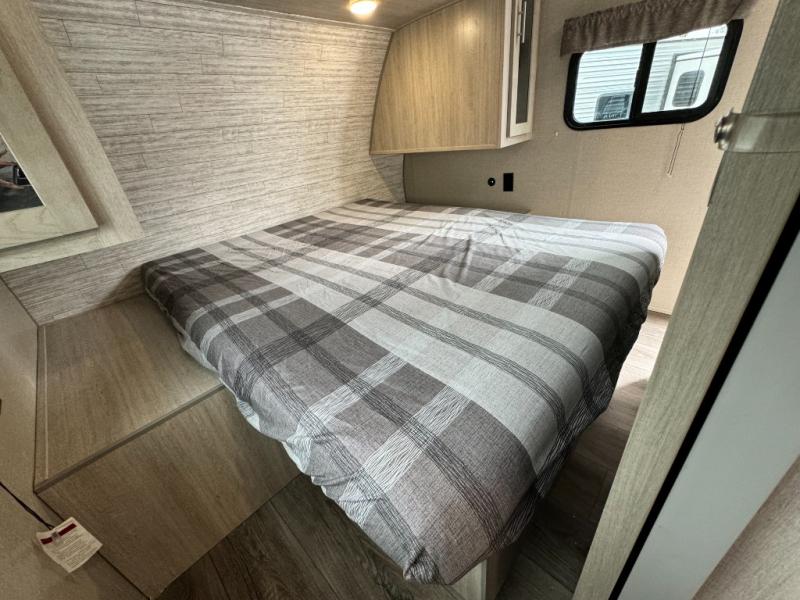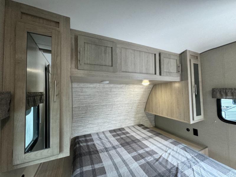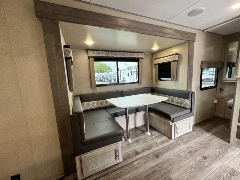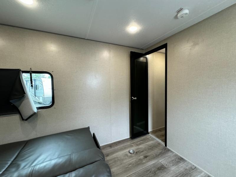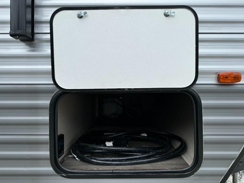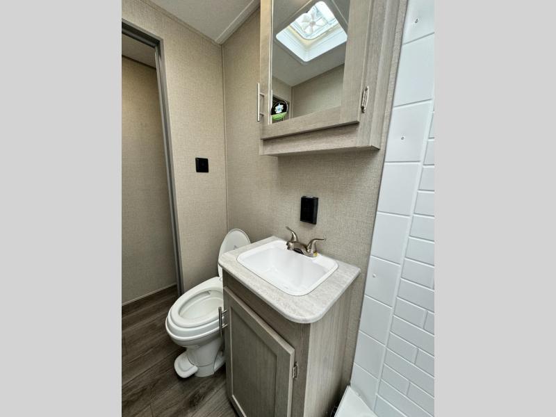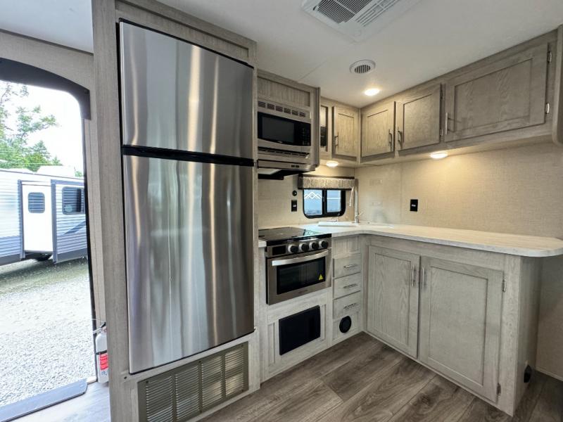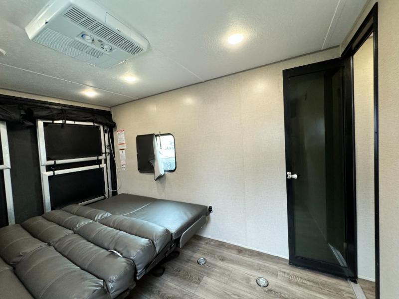 The best looking, most affordable toy hauler is found in the Catalina Trailer Blazer by Coachmen. Each one is constructed with a seamless alpha roof membrane, an enclosed and fully sealed underbelly, and a cambered structural steel I-beam frame for added support. There is a rear loading cargo door with a 3,000 lb. capacity, a black out screen wall with a zip walk-thru and windows, plus 500 lb. tie-downs to secure your toys. You'll love the interior with its Congoleum woodplank linoleum flooring, pleated night shades, and LED interior lighting. Head outside to find an electric awning with multicolored LED lights and a remote, a 15' Toy Loc cable, a "Leash Link" quick hookup D-ring for pets, and upgraded aluminum wheels. The Catalina Trail Blazer also comes with RV-LINK 4G LTE connectivity with a WiFi booster and extender, a JBL Aura Cube media center, plus premium JBL interior speakers to ensure you'll never go bored!