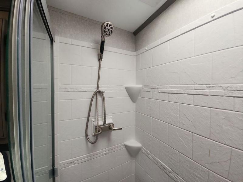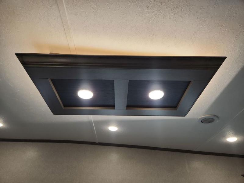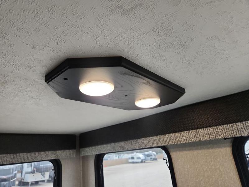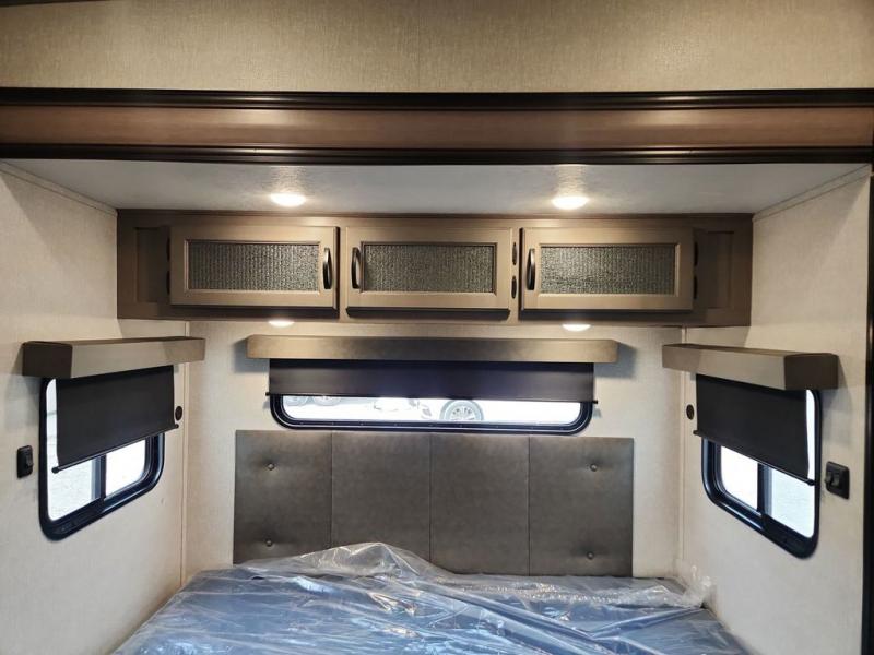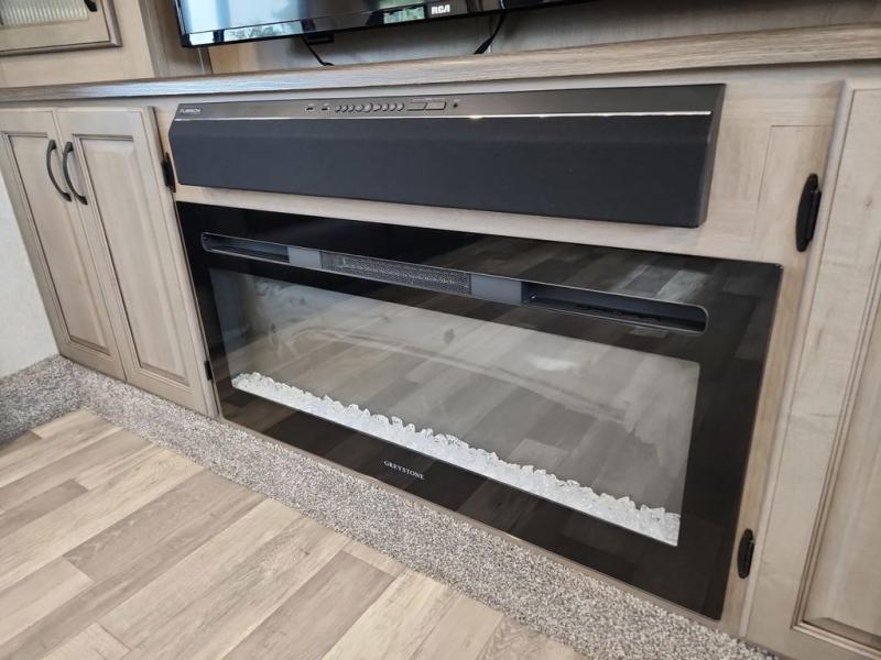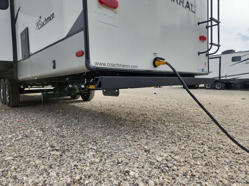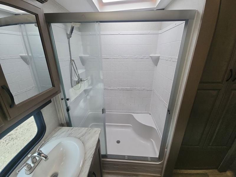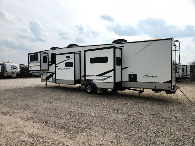 Each Chaparral mid-profile fifth wheel by Coachmen is designed with residential features, loads of storage space, and roomy bedroom suites to make you feel right at home. The durable construction means you can enjoy your RV for years to come. There's dual-sided Azdel composite sidewall panels, Weather Shield+ technology, and Tri-Tex powder coated frame technology that will allow you to camp year around. Each model includes a Winegard Air 360 HDTV/radio dome antenna and an AM/FM/CD/DVD player with Bluetooth to keep your entertained, plus roller night shades and a modern electric fireplace to make your space cozy. There is also a large transom window in the kitchen, a modern high-rise faucet, LED motion sensor lights in the bathroom, plus a full-size shower with glass doors and a seat. Now that's what I call luxury! Choose a Chaparral fifth wheel today!