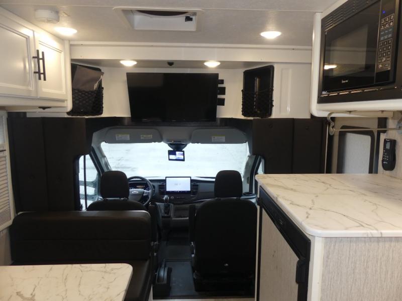 The Cross Trail EV Class C gas motorhomes by Coachmen offer livable and storage friendly coaches with an interior/exterior Smart TV and large shower facilities compared to Class B vans. Also included is the Renogy Empowered state-of-the-art hybrid electrical system designed to operate every coach function from battery power, including the A/C, and is convenient for operating systems while traveling without the use of a generator. Each has a fuel-friendly Ford transit chassis, Azdel composite vacuum bonded sidewalls, and a CrossFlex roof membrane, providing more puncture resistance.
