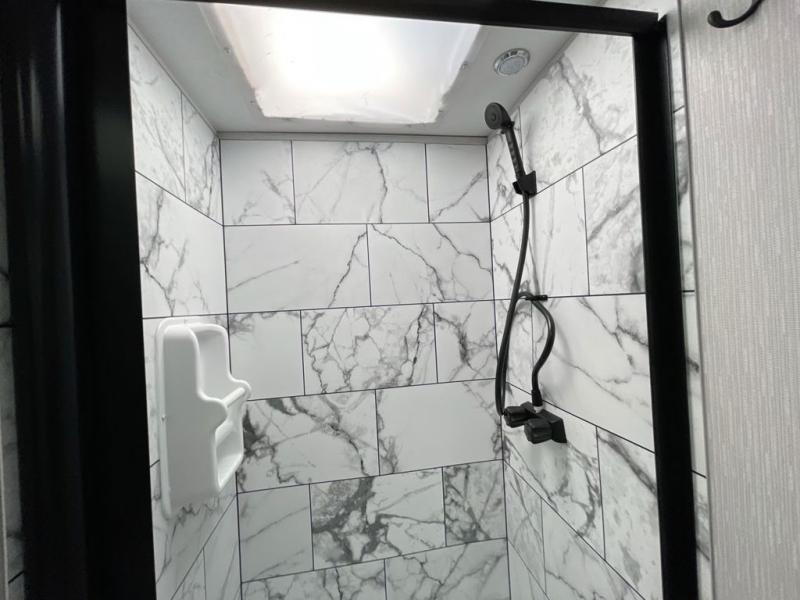 This motorhome has everything you will need for a fun road trip! From the private bedroom with a queen bed slide for more interior space to the 39" x 95" bunk over cab with a swing-arm TV near it. You can even watch the big game outside with the exterior entertainment center and stay protected by the 20' awning. The rear corner bathroom has a shower to freshen up in and a linen closet to keep your towels close. Prepare your best meals with the three burner cooktop, the two pantries, and the flip-up countertop extension. Enjoy your meals at the 44" x 76" J-lounge with a 18" extension for even more seating space, and relax on the sofa after filling your belly!