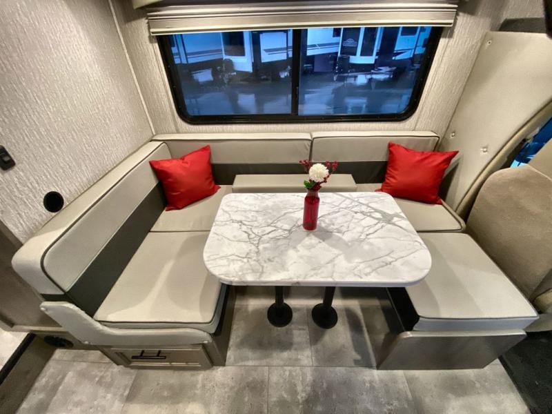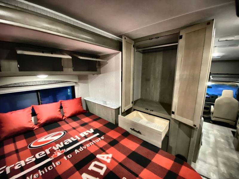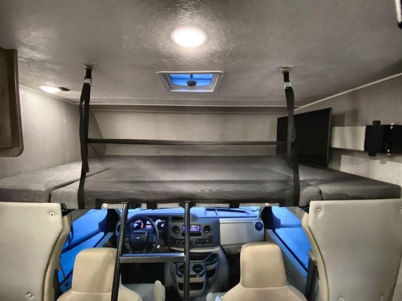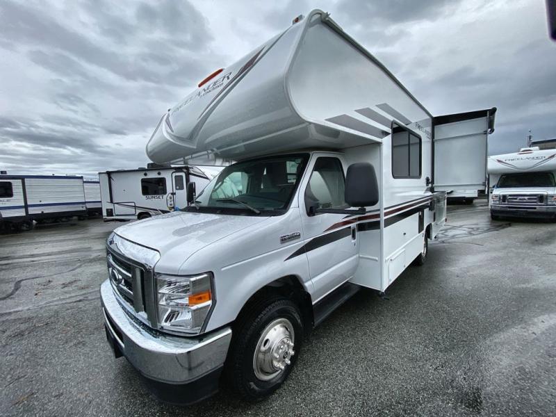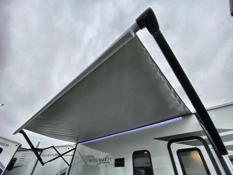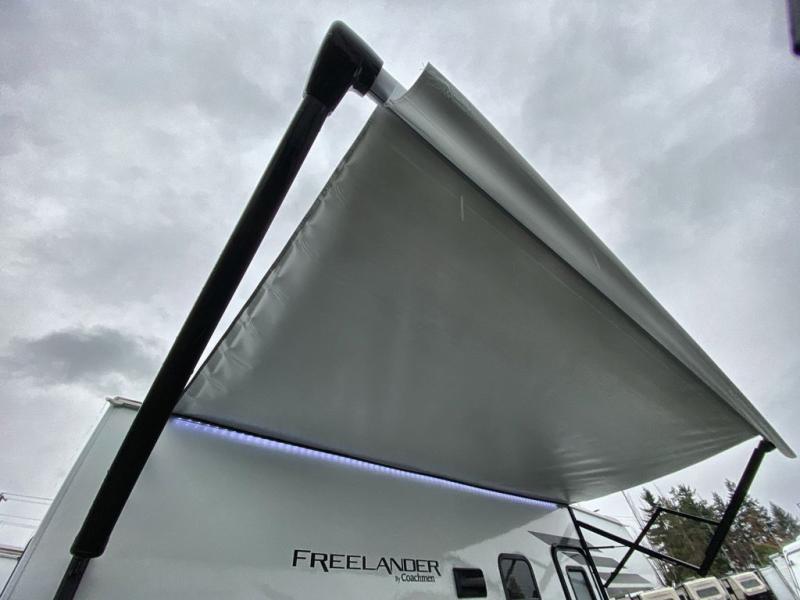 With the Coachmen Freelander motorhome you will get a reliable and quality Class C gasoline coach that contains more factory-installed features than anyone else. The Freelander features Azdel composite sidewall substrate and a fiberglass exterior to keep the entire structure lightweight. You will love the interior with its hardwood cabinet doors and drawer fronts, pleated night shades, a skylight over the shower, plus a systems command center to control your units functions in one convenient location. You can bring along all of your belongings with the roto-cast rear warehouse storage compartment, and the power awning includes vinyl weather guard to help protect from the elements, plus there are LED lights for an inviting outdoor living space.