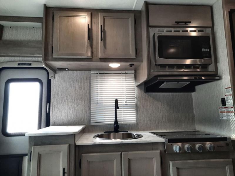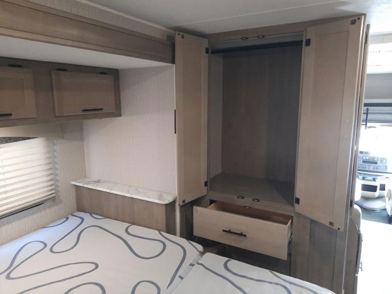 With the Coachmen Freelander motorhome you will get a reliable and quality Class C gasoline coach that contains more factory-installed features than anyone else. The Freelander features Azdel composite sidewall substrate and a fiberglass exterior to keep the entire structure lightweight. You will love the interior with its hardwood cabinet doors and drawer fronts, pleated night shades, a skylight over the shower, plus a systems command center to control your units functions in one convenient location. You can bring along all of your belongings with the roto-cast rear warehouse storage compartment, and the power awning includes vinyl weather guard to help protect from the elements, plus there are LED lights for an inviting outdoor living space.