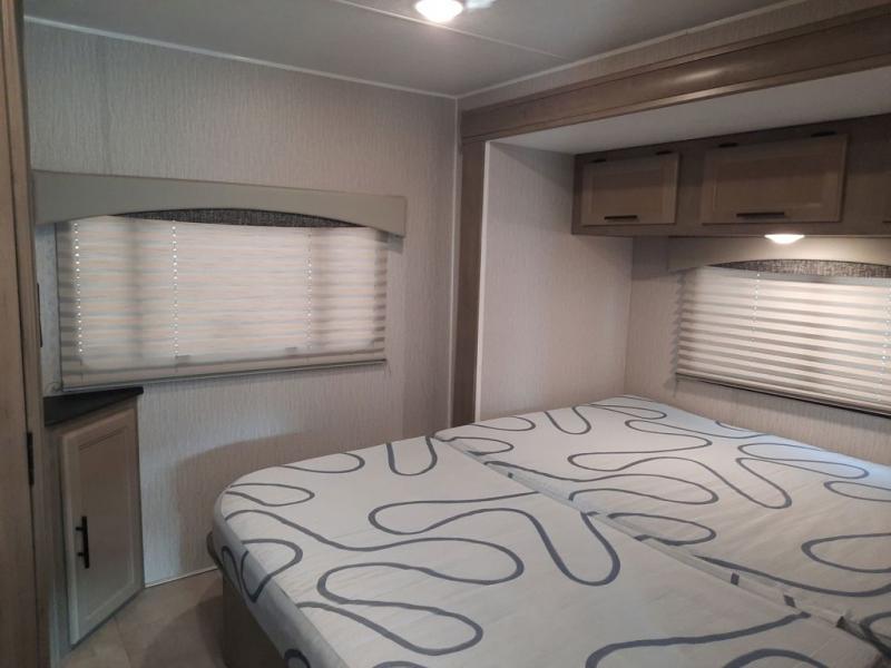 If you are looking for an RV that is both functional and fashionable, then you have found it in this Freelander Class C gas motorhome. The large wardrobe in the bedroom area gives you a place to store all of your outdoor garments, like rain coats and hiking boots, and the J-lounge dinette in the living area lets you relax together with the family while dinner is being prepared in the kitchen on the three-burner range top. When its time for bed, this coach has you covered with enough space to sleep six people comfortably.