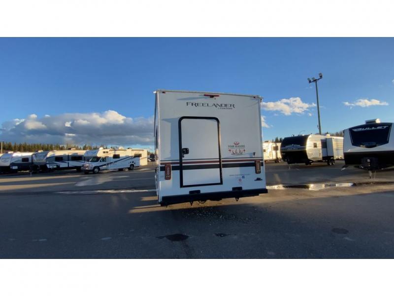 The Freelander Class C gas motorhome by Coachmen is a wonderful choice for anyone looking to get out on the road. A wide variety of floorplans and features offers something for everyone. The Azdel composite sidewalls and CrossFlex PVC polyester reinforced roof material provide a solid structure to enjoy all your trips. Conveniences like an over-door magazine rack with an HDMI and charge station and reclining cockpit seats are standard, along with a rear color backup camera, a premium showerhead and faucet, and one-piece thermofoil countertops. You might like to add the optional Platinum Edition that comes with sideview cameras, upgraded running boards, a convection microwave, and many more features!