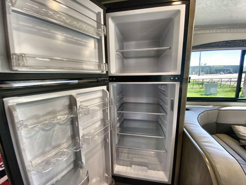 Enjoy a great escape in this motorhome! With a 60” x 80” queen bed and a 57” x 95” bunk over the cab, there’ll be plenty of space for everyone. Eat your meals at the spacious U-dinette or use it to spread out and play a board game once the dishes are cleared away. The kitchen rivals your home setup with a pantry, residential microwave, and stainless steel farmer's kitchen sink with a high-rise kitchen faucet. More storage is available in the bedroom with wardrobe shelves and a roomy underbed storage area. This model also includes the CRV Supersprings Ride with heavy duty stabilizer bars, chassis electronic stability control, SumoSprings front shock absorbers, and more!