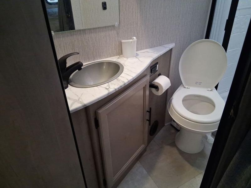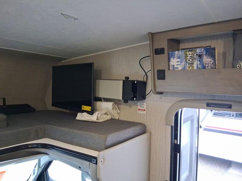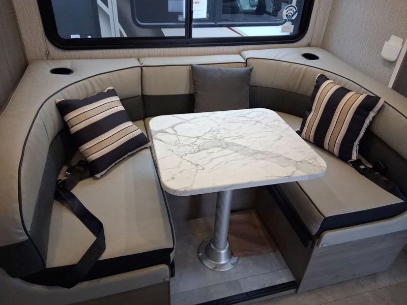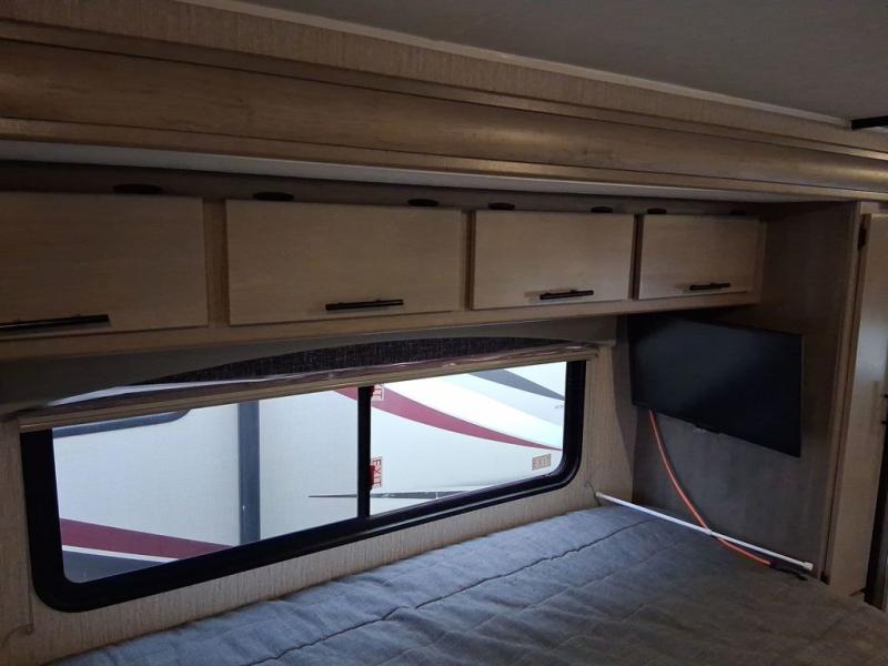 Enjoy a great escape in this motorhome! With a 60” x 80” queen bed and a 57” x 95” bunk over the cab, there’ll be plenty of space for everyone. Eat your meals at the spacious U-dinette or use it to spread out and play a board game once the dishes are cleared away. The kitchen rivals your home setup with a pantry, residential microwave, and stainless steel farmer's kitchen sink with a high-rise kitchen faucet. More storage is available in the bedroom with wardrobe shelves and a roomy underbed storage area. This model also includes the CRV Supersprings Ride with heavy duty stabilizer bars, chassis electronic stability control, SumoSprings front shock absorbers, and more!