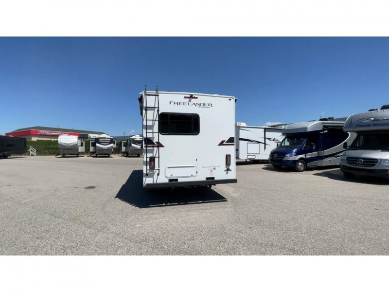 The Freelander Class C gas motorhome by Coachmen is a wonderful choice for anyone looking to get out on the road. A wide variety of floorplans and features offers something for everyone. The Azdel composite sidewalls and CrossFlex PVC polyester reinforced roof material provide a solid structure to enjoy all your trips. Conveniences like an over-door magazine rack with an HDMI and charge station and reclining cockpit seats are standard, along with a rear color backup camera, a premium showerhead and faucet, and one-piece thermofoil countertops. You might like to add the optional Platinum Edition that comes with sideview cameras, upgraded running boards, a convection microwave, and many more features!